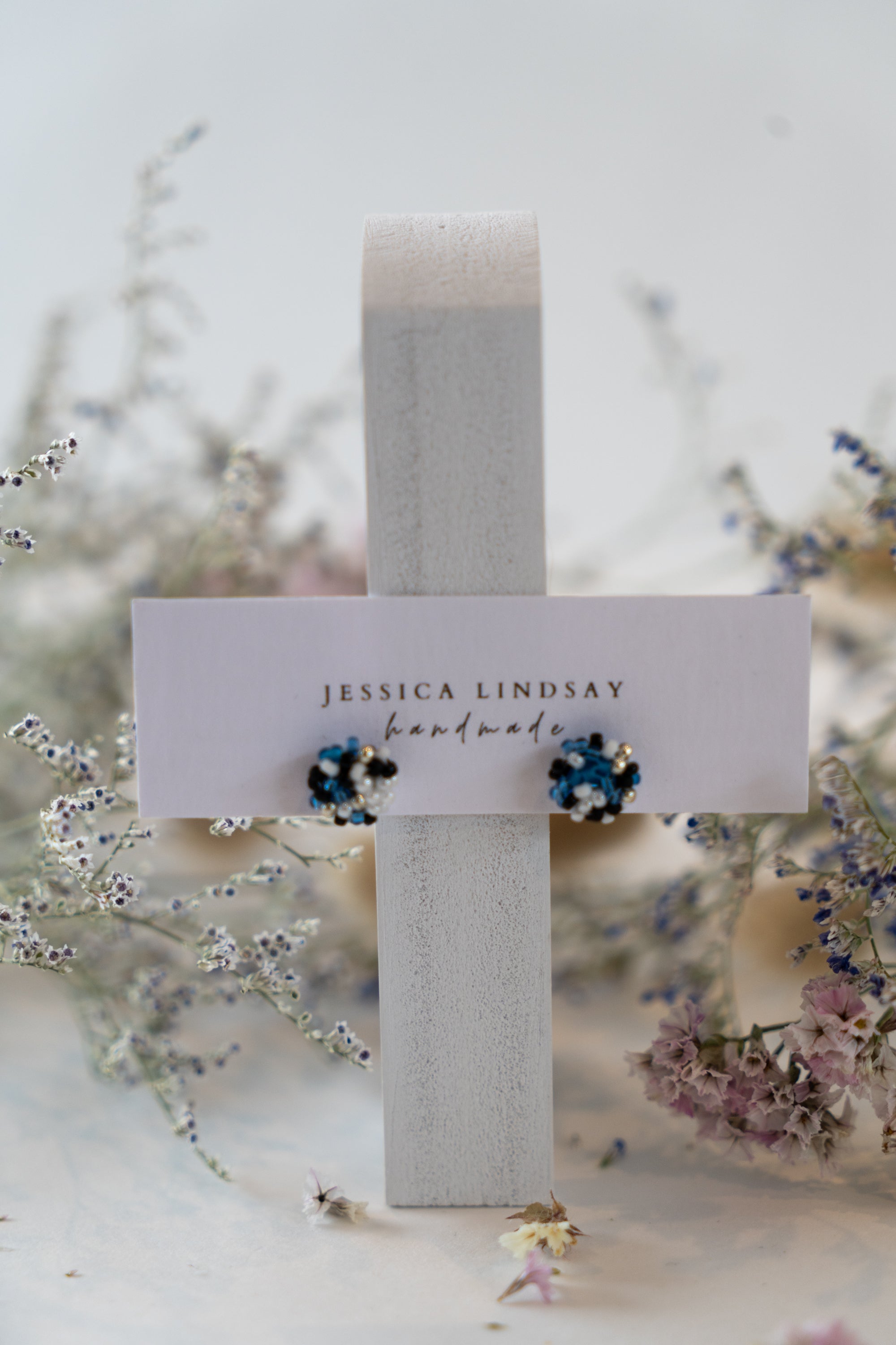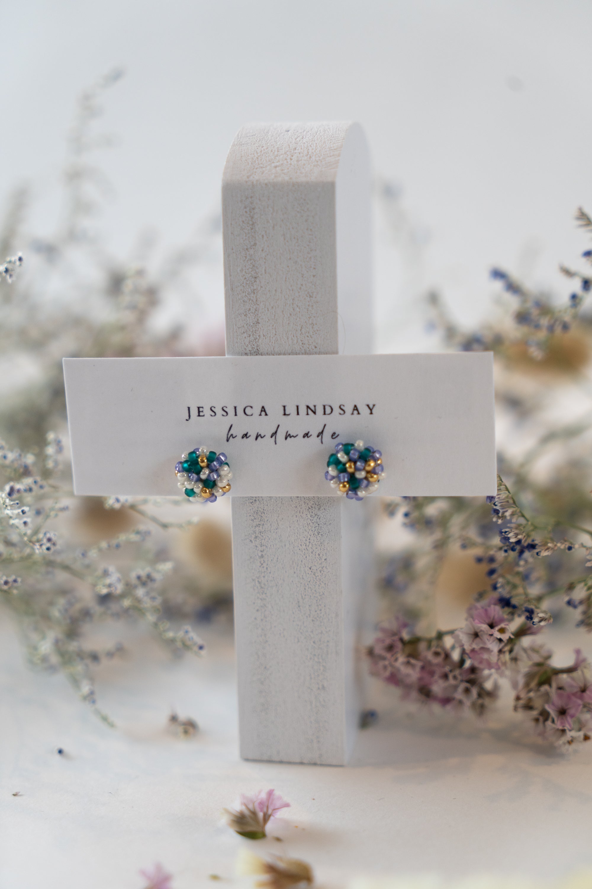Materials: Glass seed beads, Titanium posts, Titanium ear nuts