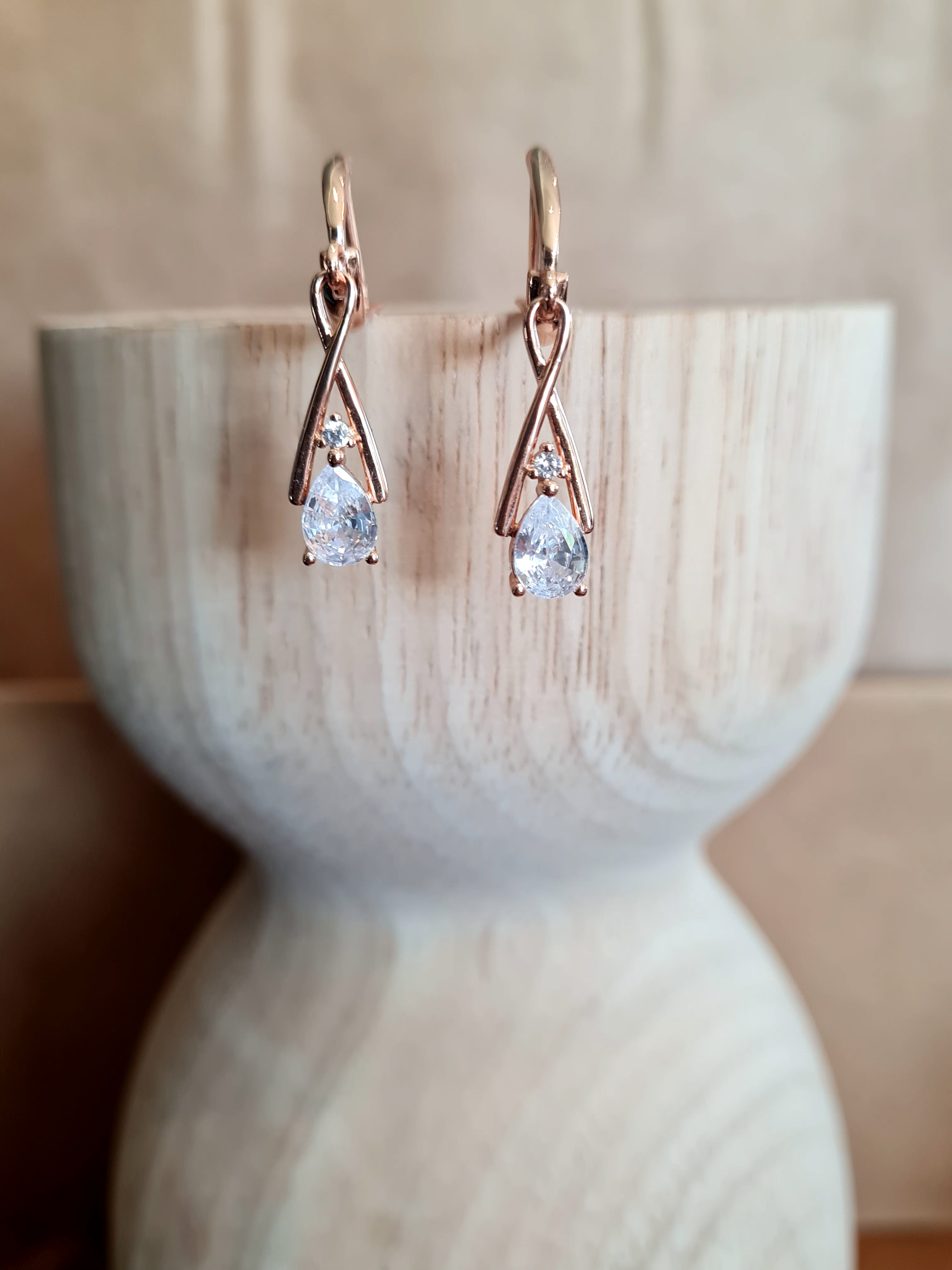 Rose Gold Twisted Drop Earrings with Pear-Cut CZ