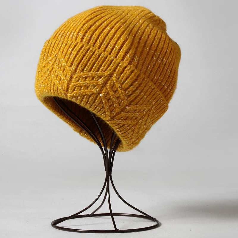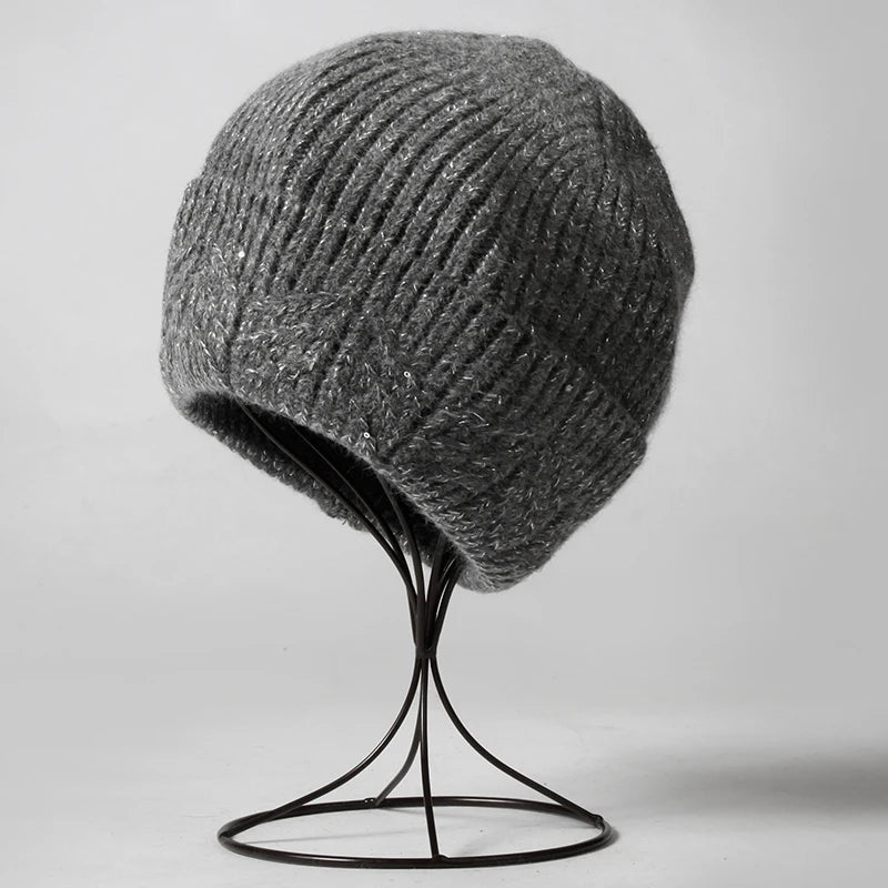 Cashmere/Acrylic Blend Hats with Cabled Rim and Subtle Sparkle