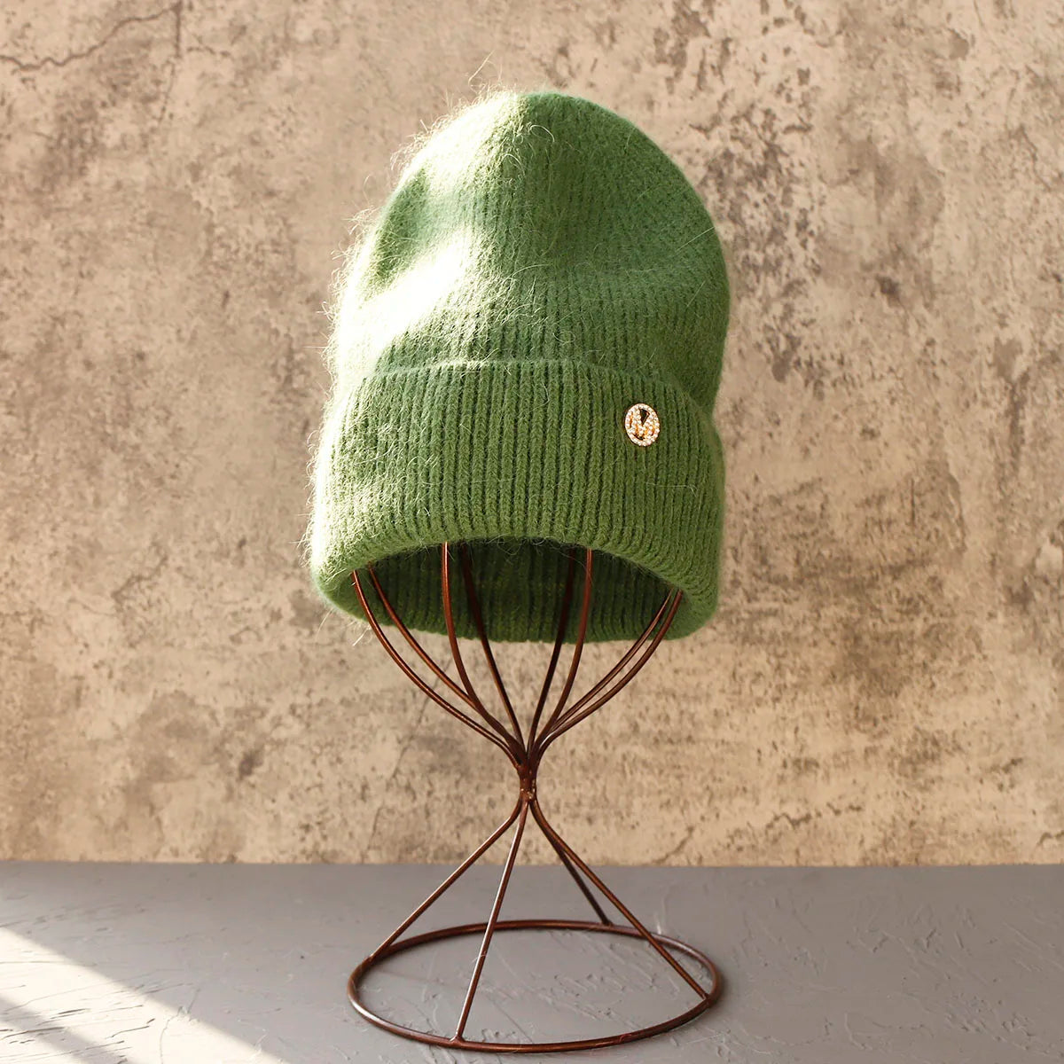 Warm, Thick, and Fluffy Cashmere Hats with Bling Badge Trim