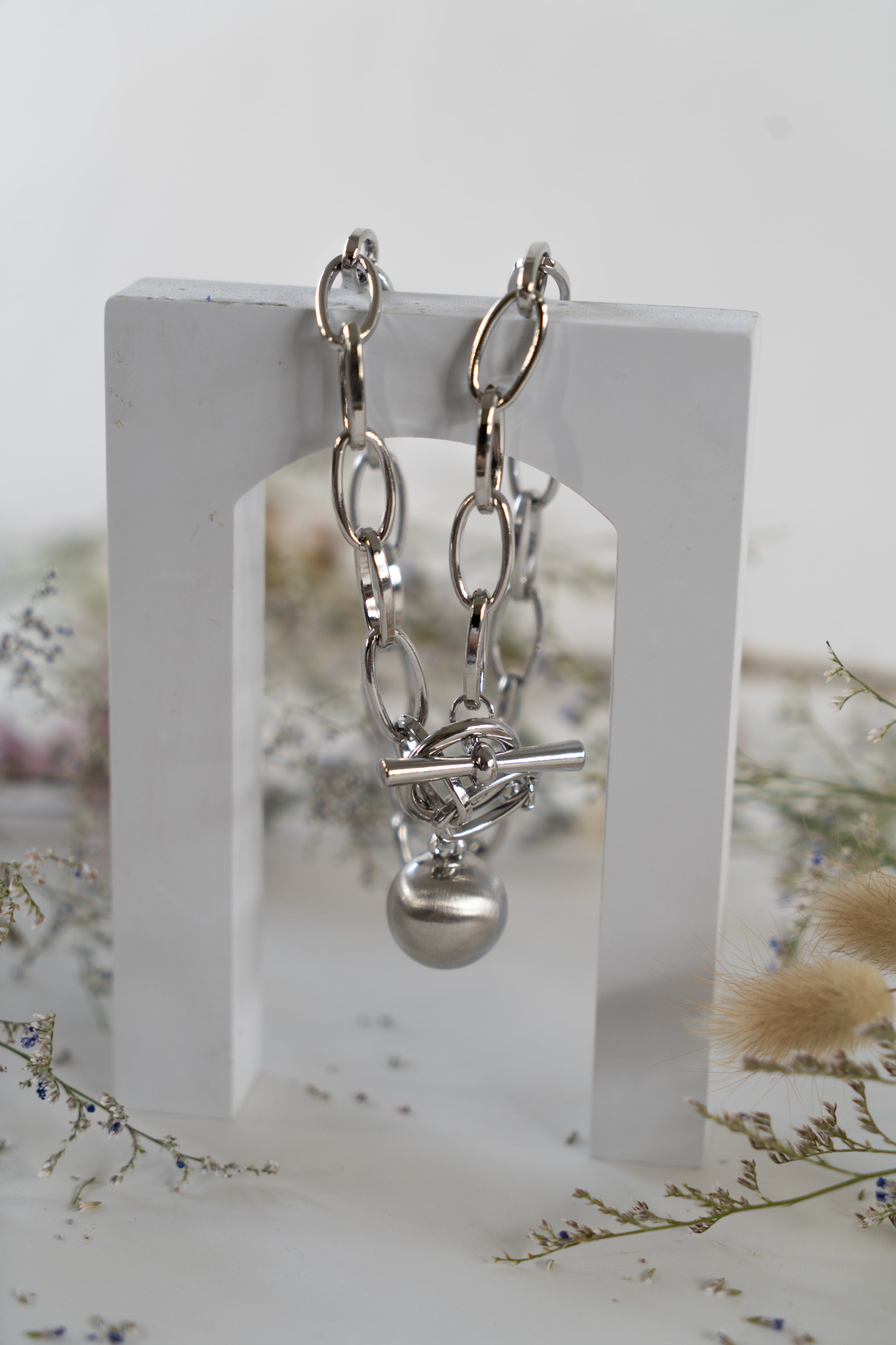 This chunky fob-style necklace has a substantial, eye-catching design that sits elegantly on the neck. Its bold, robust style makes it a standout piece, perfect for adding a touch of sophistication to any outfit. Check out our earring collection for fob earrings to go with this piece.