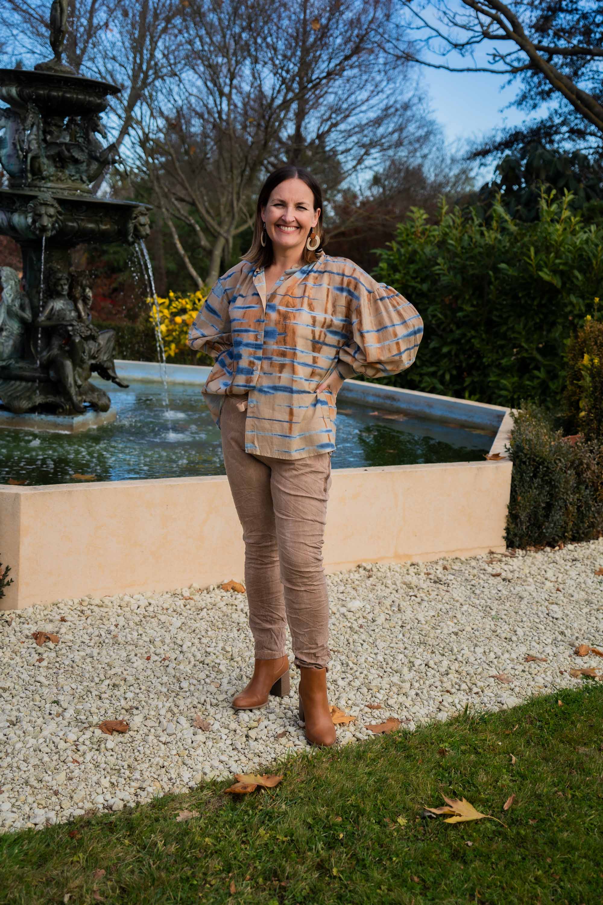 Introducing our stylish Cotton Shirt with a striking stripe print. This beige shirt showcases a unique tie-dye effect, blending tan and blue shades for a contemporary look. It features a classic Mandarin collar, with gentle gathers flowing from the neckline for a relaxed fit. The set-in sleeves are designed with cuffs, adding a touch of sophistication. Finished with elegant shell buttons, this shirt effortlessly combines comfort and style for a timeless addition to your wardrobe.