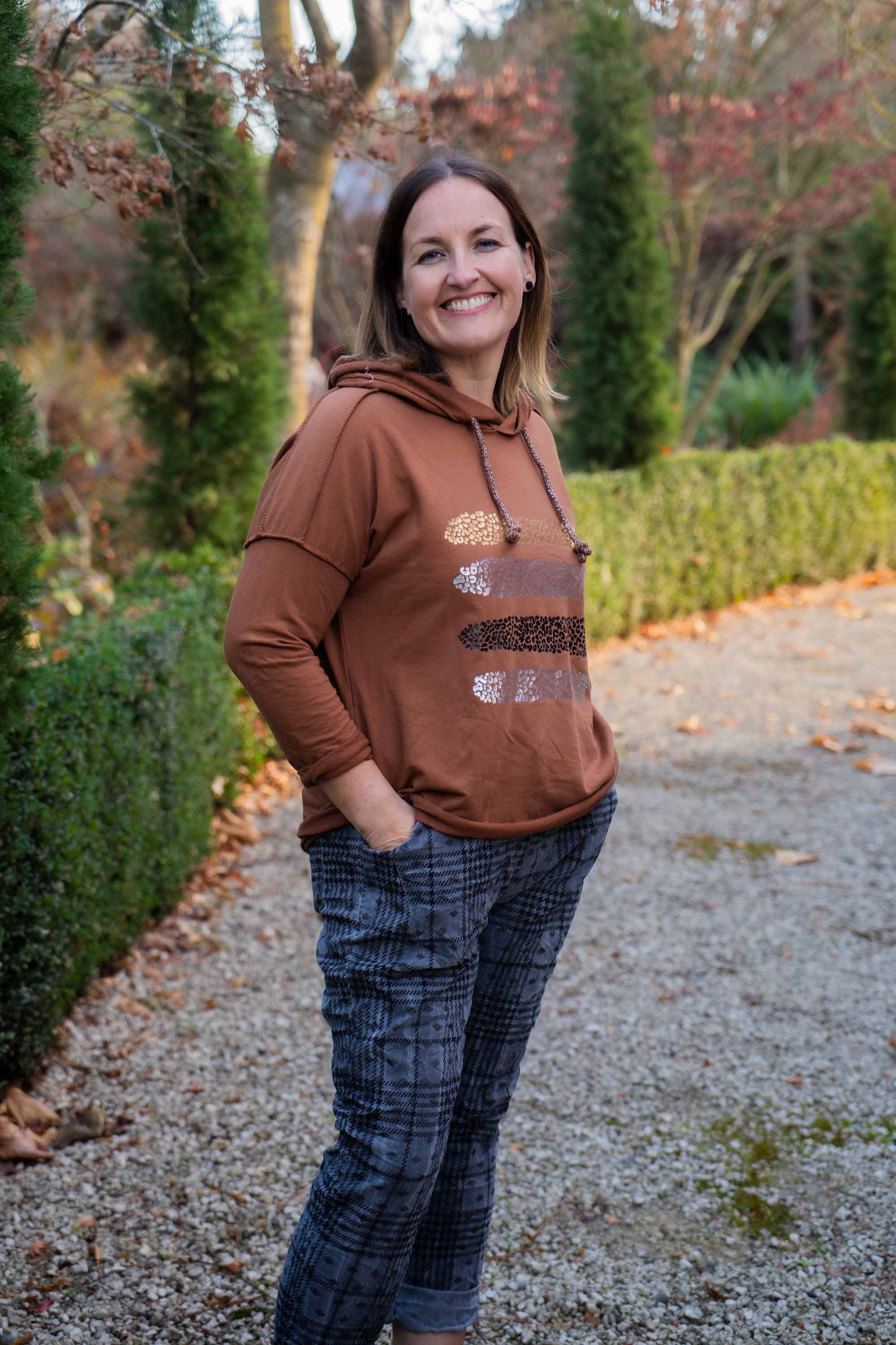 This 100% Cotton Sweat Top is the perfect choice for casual wear, designed to pair effortlessly with jeans or pants, it features a distinctive mixed metallic front panel that adds a touch of contemporary flair. The hood is adorned with metal threading through the cord, enhancing its unique appeal.
