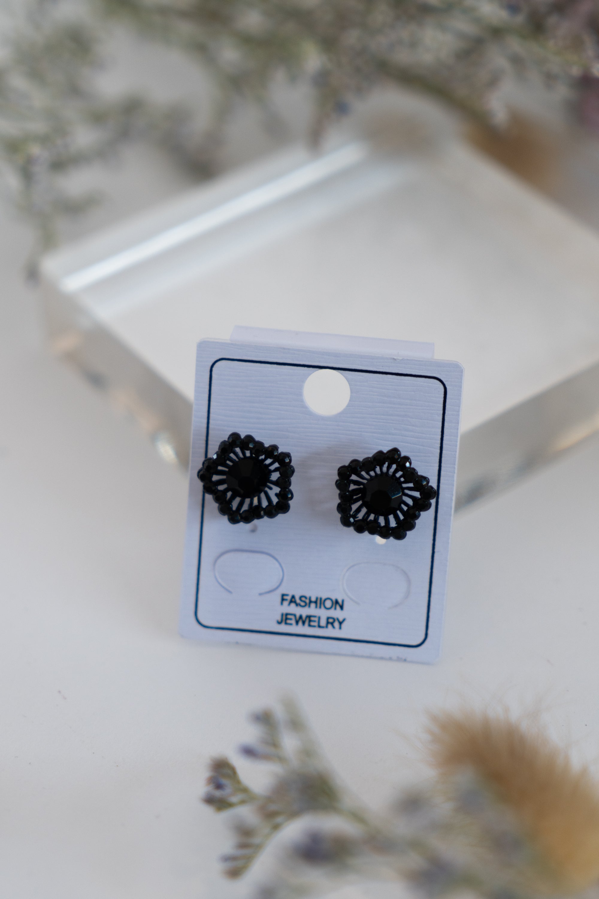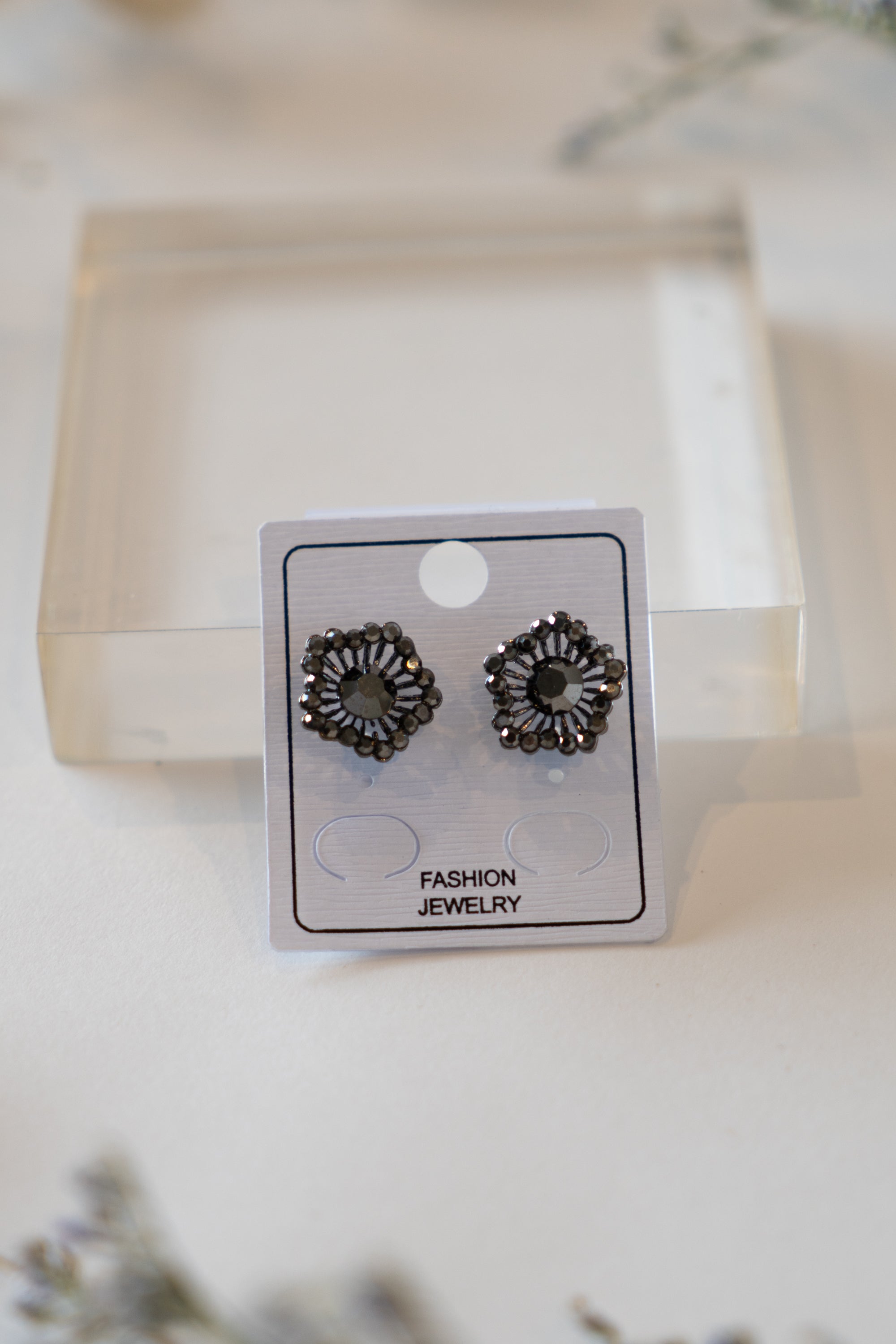 Our diverse range of black earrings includes options for both evening and casual wear. From the evening range, these earrings feature a matte gunmetal mesh-daisy type style encased with gunmetal crystals. This design is also available in a black with black crystal option. Their versatile design allows them to be dressed up or down, making them suitable for any occasion.