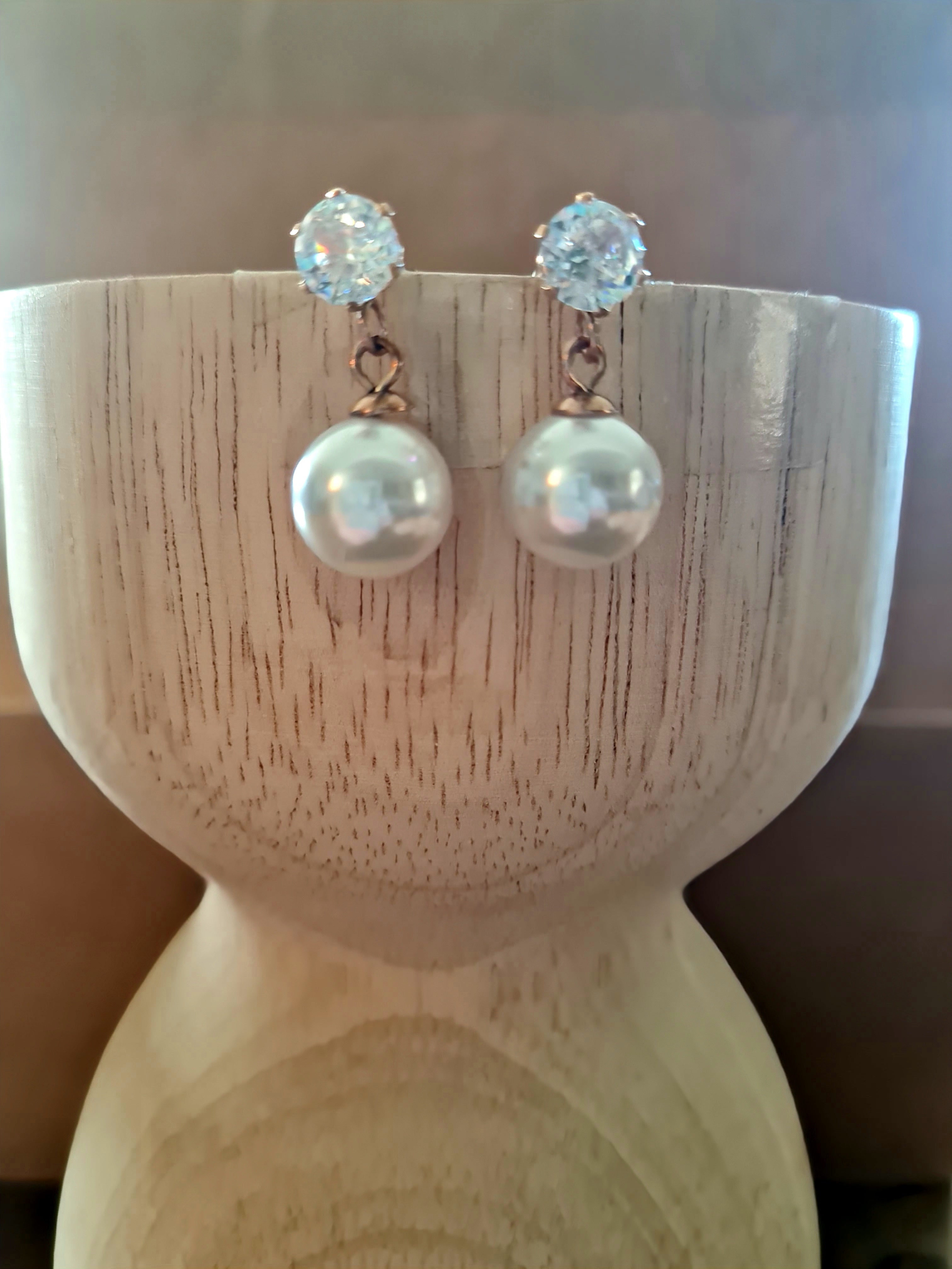 A refined choice for the minimalist bride or guest, these earrings feature a sparkling cubic zirconia stud paired with a luminous white pearl drop. Understated yet elegant, they offer a timeless silhouette perfect for weddings, formal events, or any occasion that calls for subtle sophistication. A beautiful balance of simplicity and grace, these earrings add just the right touch of classic charm to any ensemble.