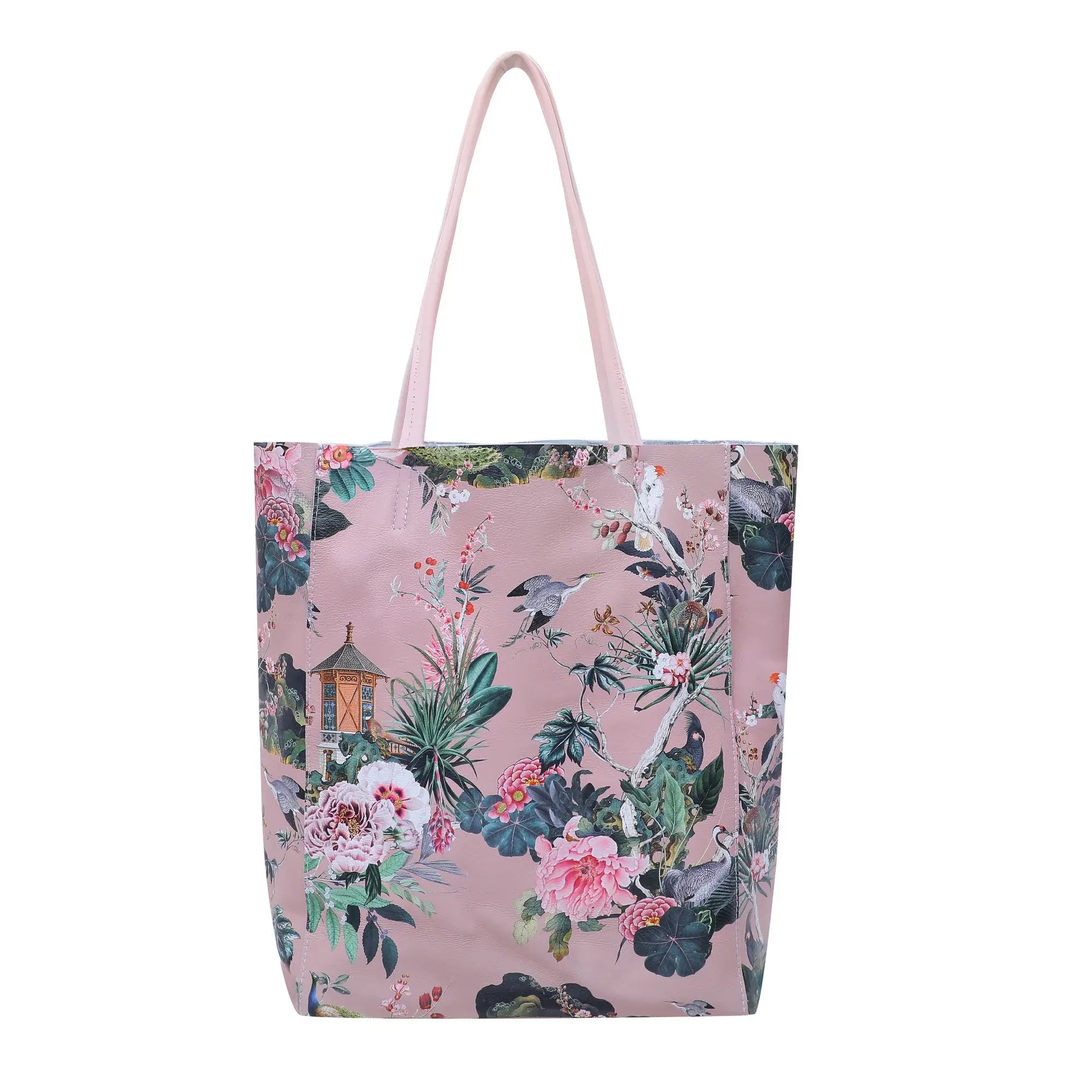 Elevate your accessory collection with this exquisite Tree of Life Shopper Tote. Crafted from premium Italian leather in a delicate blush tone, this bag features a breathtaking design that wraps gracefully across both sides. A harmonious blend of peonies, cockatoos, and peacocks creates a serene yet vibrant aesthetic reminiscent of Japanese-inspired florals.