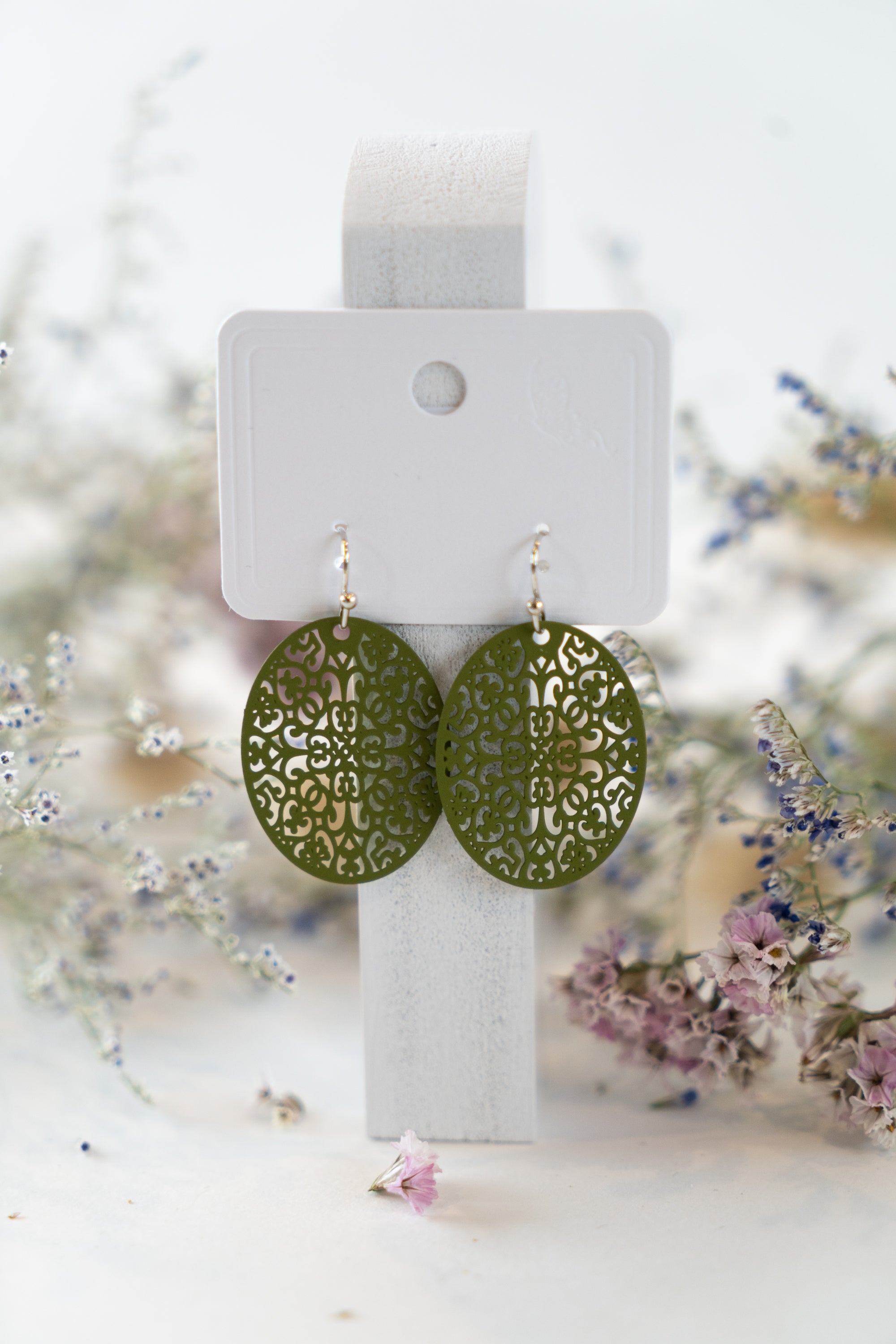 These fine mesh, patterned earrings come in a beautiful array of color options, offering a delicate and lightweight design. A perfect small accessory to add a subtle touch of elegance to any outfit.