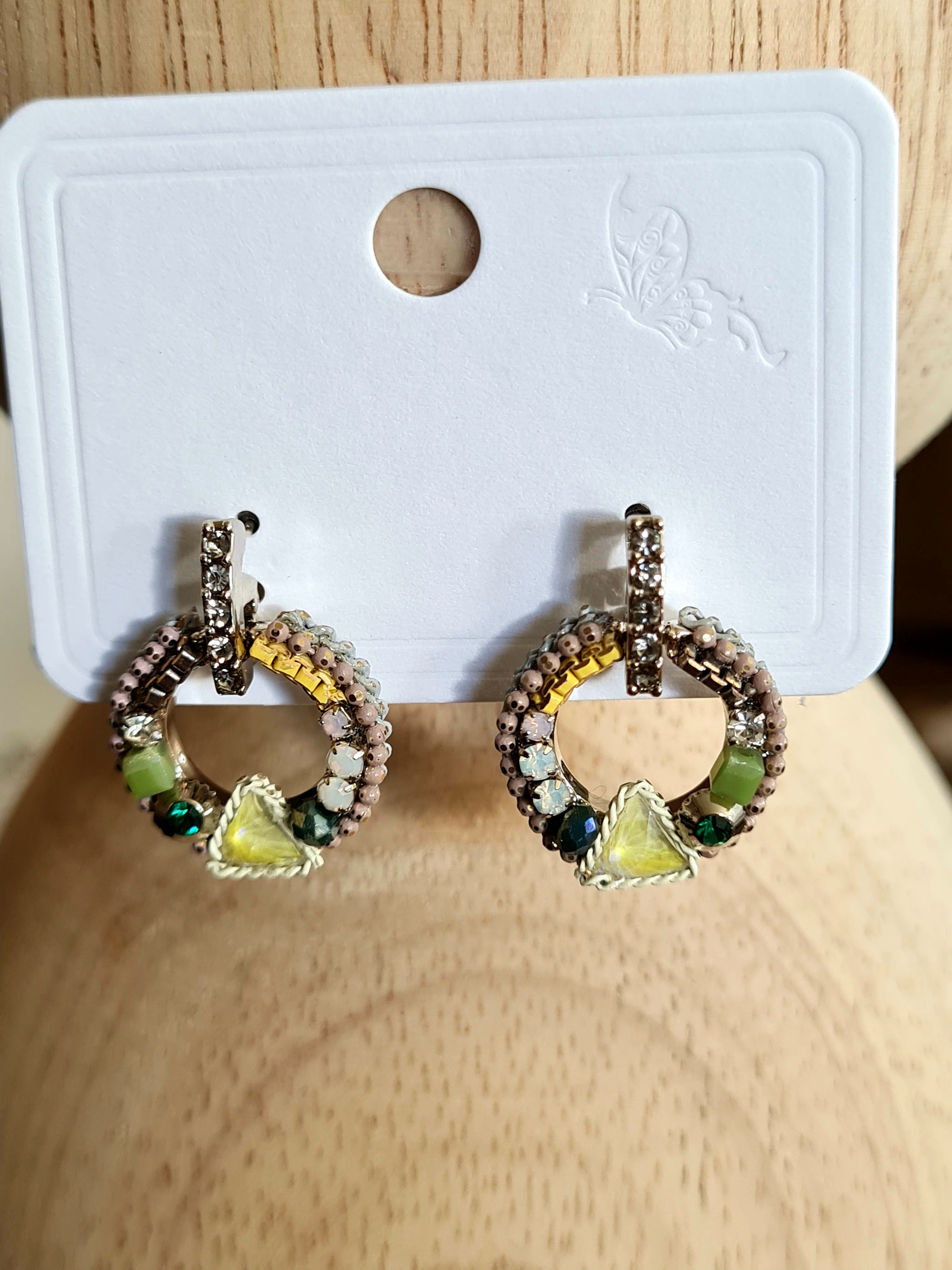 Available in three unique colourways—soft pinks, gentle greens with lemon accents, and a striking red and black combo—these earrings bring just the right touch of sparkle for everyday wear or minimalist styling.