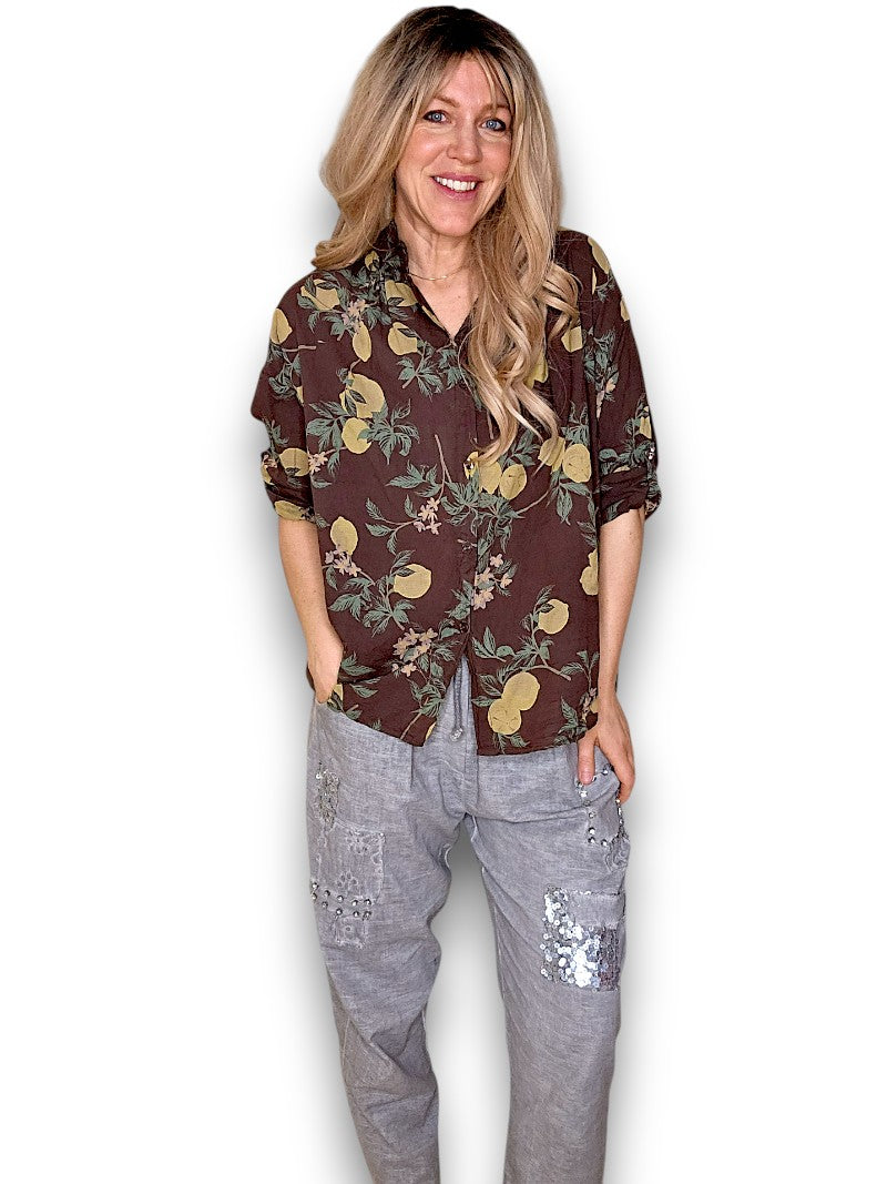 Helga May Dolly Lemon Cotton Top Dark Coffee