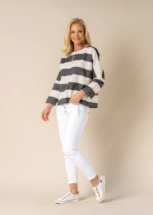 Imagine Fashion - Aggie Cotton Top Granite Stripe