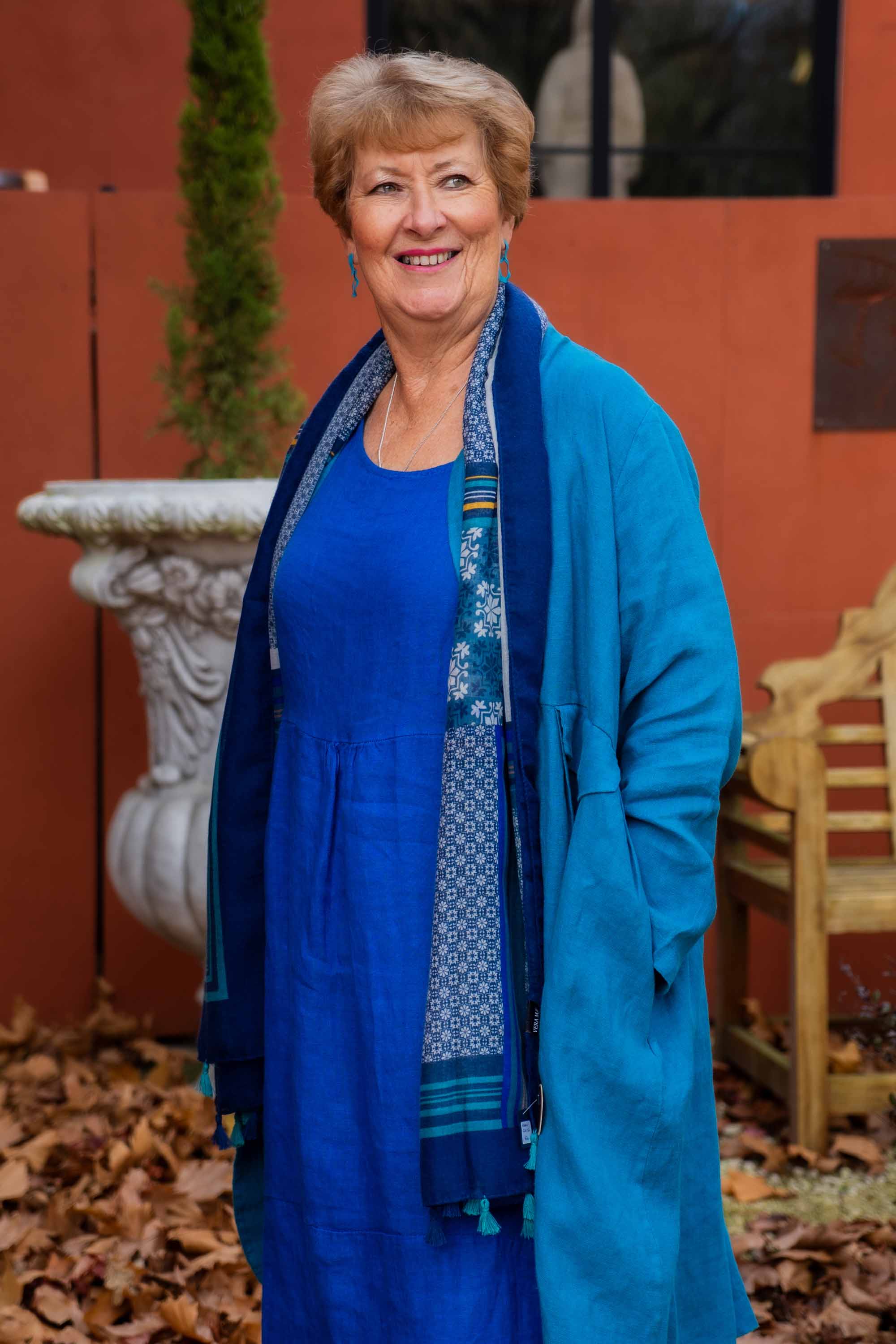This charming little dress features a lower cut bodice with a skirt that is slightly gathered from the bodice, both in the front and back. The design is finished with a deep panel at the hemline and convenient slash pockets. The set-in sleeves are quite short and adorned with a small cuff, adding a touch of elegance. Perfect for those who prefer a shorter look, this dress combines style and comfort seamlessly. We have paired the Cobalt Blue option with a gorgeous Turquoise Linen Duster Coat and a fabulous scarf that blends the pieces beautifully, creating a stunning and cohesive outfit.