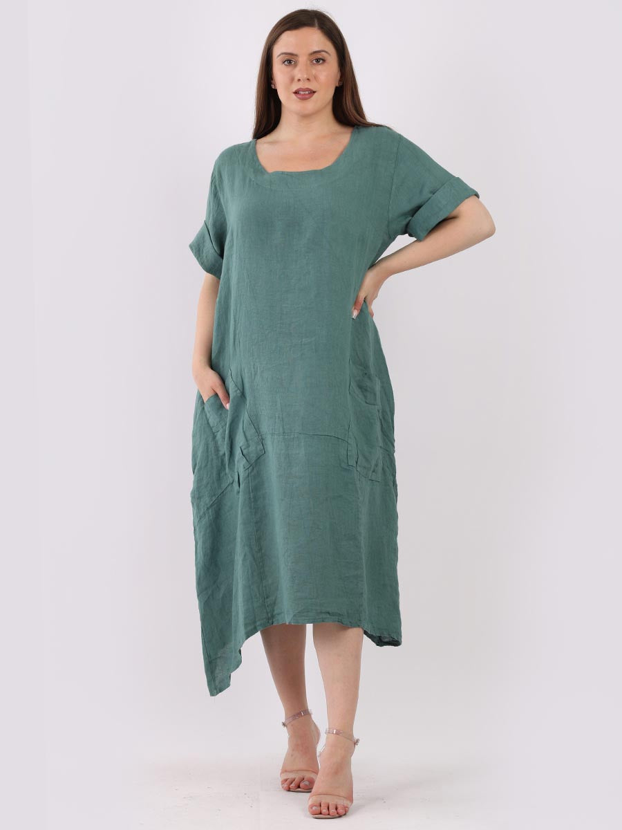 This wonderful style is perfect for the fuller figure, offering both comfort and elegance. It features a flattering round neckline and a unique twist on the side seam, positioned just above a deep hemline panel. An angled pleated patch pocket adds a touch of style and practicality. The A-line silhouette ensures a comfortable fit, draping beautifully over the hips. Ideal for any occasion, this piece effortlessly combines style and functionality. For a complete look, team this dress with a scarf from our fabulous range. Changing the scarf can give you a whole new outfit.
