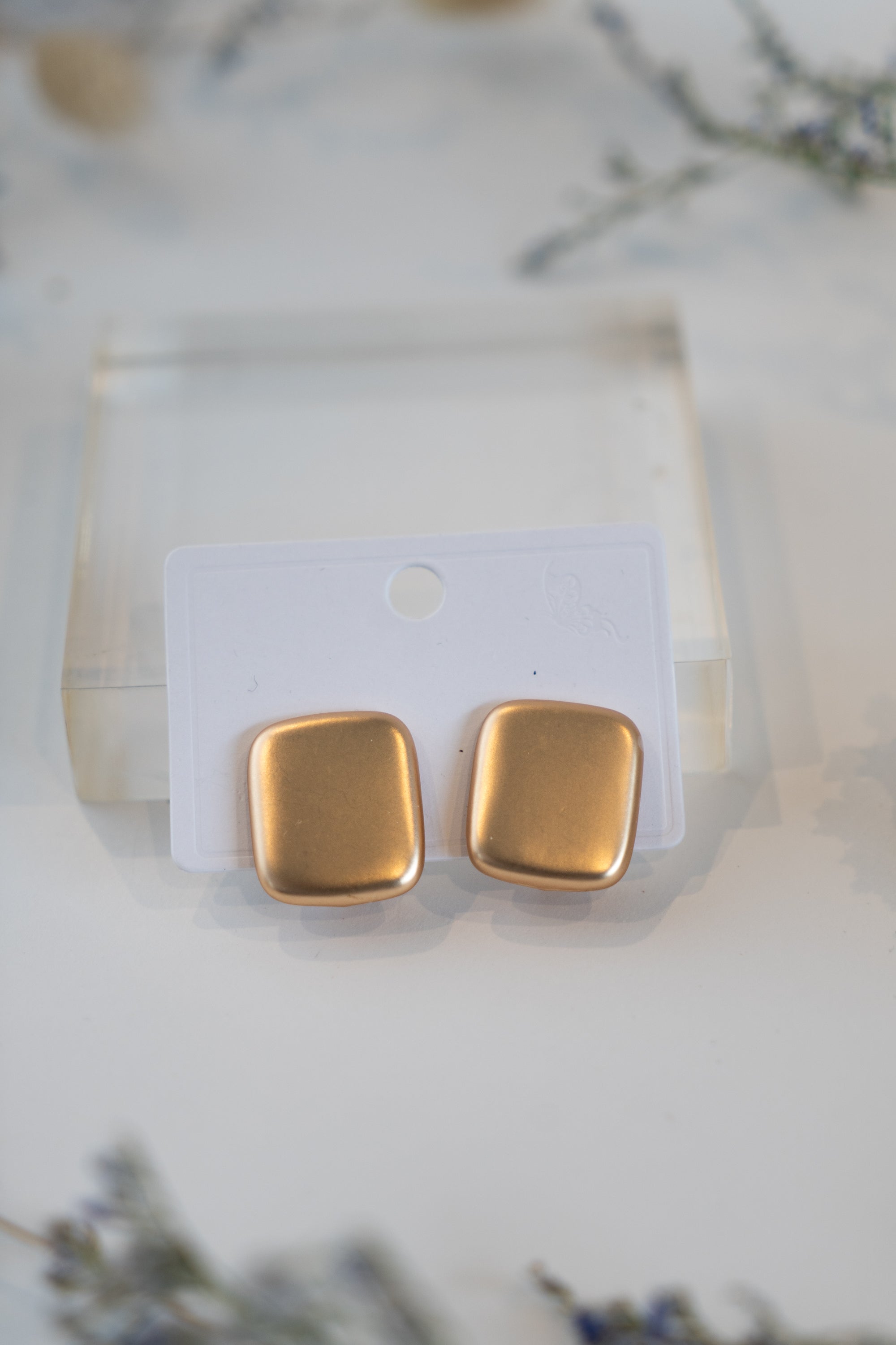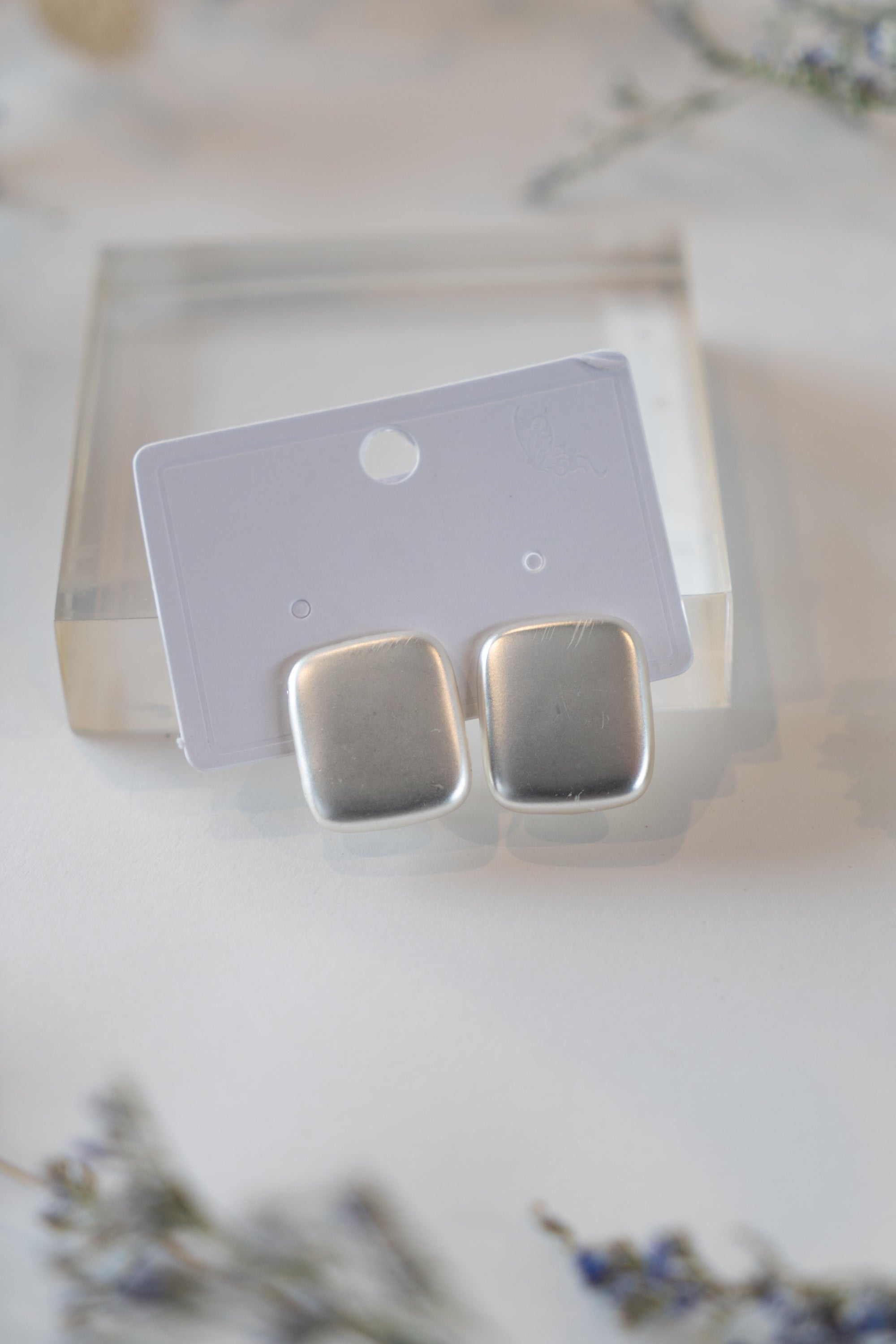 These square-shaped clip-on earrings feature a matte metal finish in polished gold and silver, offering a sleek and modern look. Their bold design and easy-to-wear clip-on style make them a versatile accessory for any occasion.