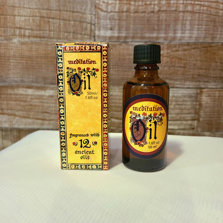 The Meditation Oil Range is a blend of 12 essential oils including Lavender, Bergamot, Nutmeg, Cedarwood, Essence of Oakmoss, Balsam of Benzoin, Gum of Frankincense, Ylang Ylang, Orange, Balsam of Tolu, Patchouli and Bay Oil.