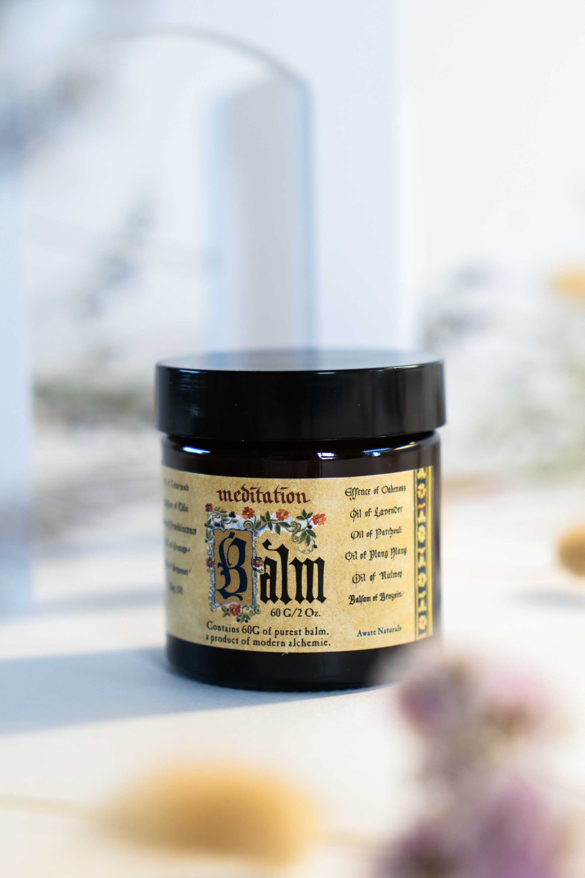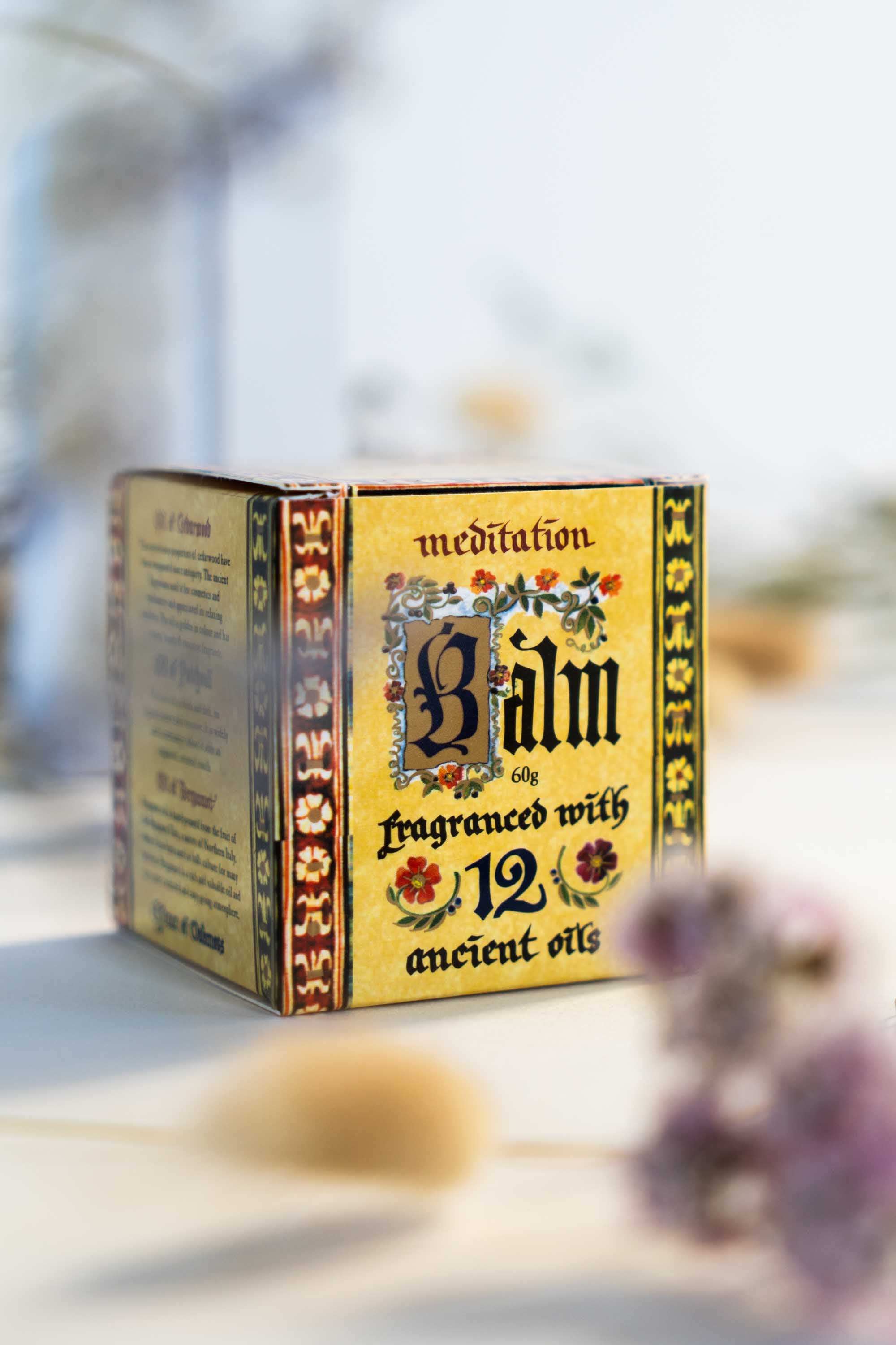 This famous Meditation Blend combines 12 ancient essential oils which create a rich and pure fragrance with an evocative, deeply satisfying quality. Use as an anywhere balm or a solid perfume option
