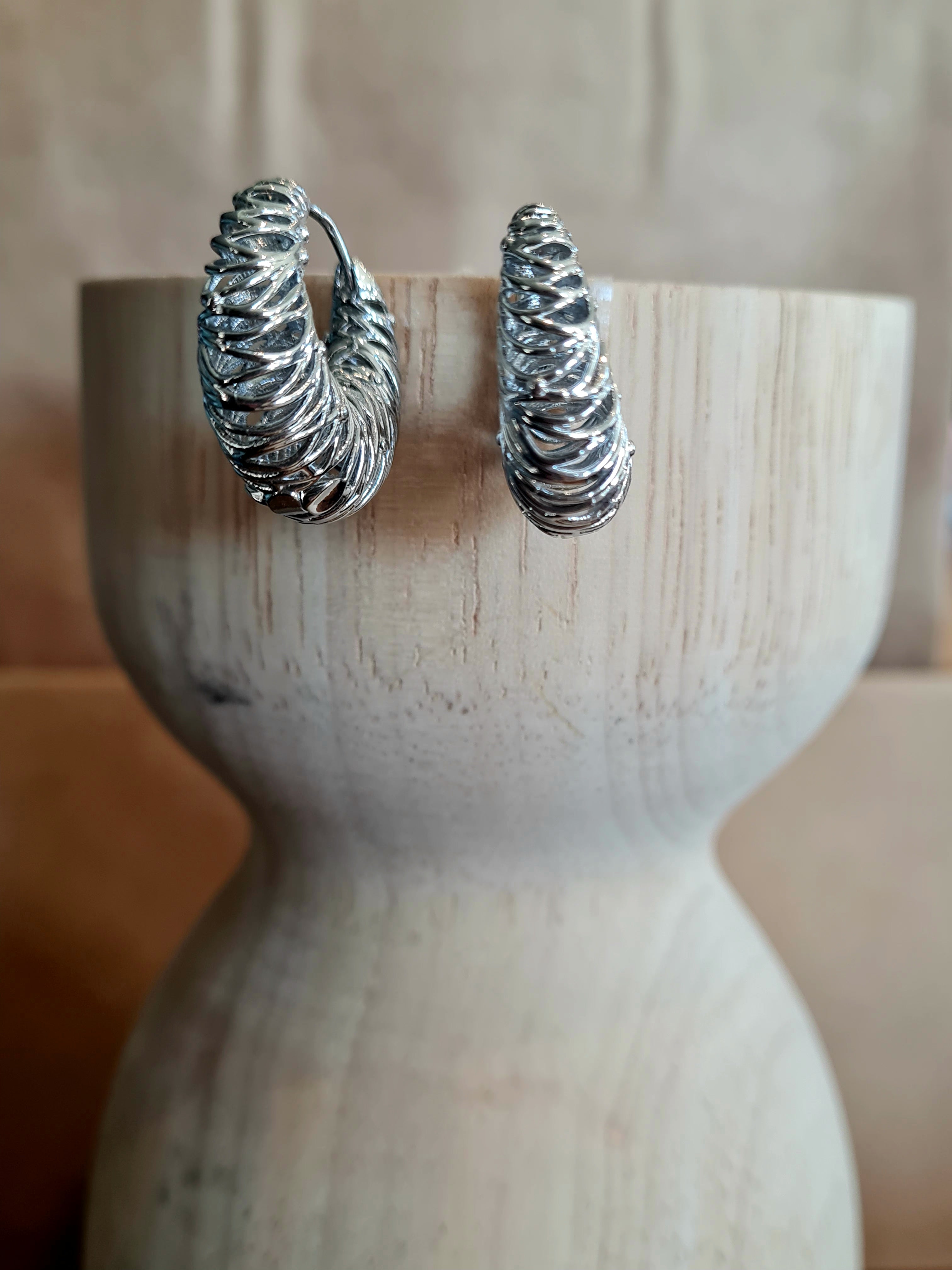 Fine mesh hoops these are wide at the base and narrow at the ear. A versatile design that works with any outfit night or day.