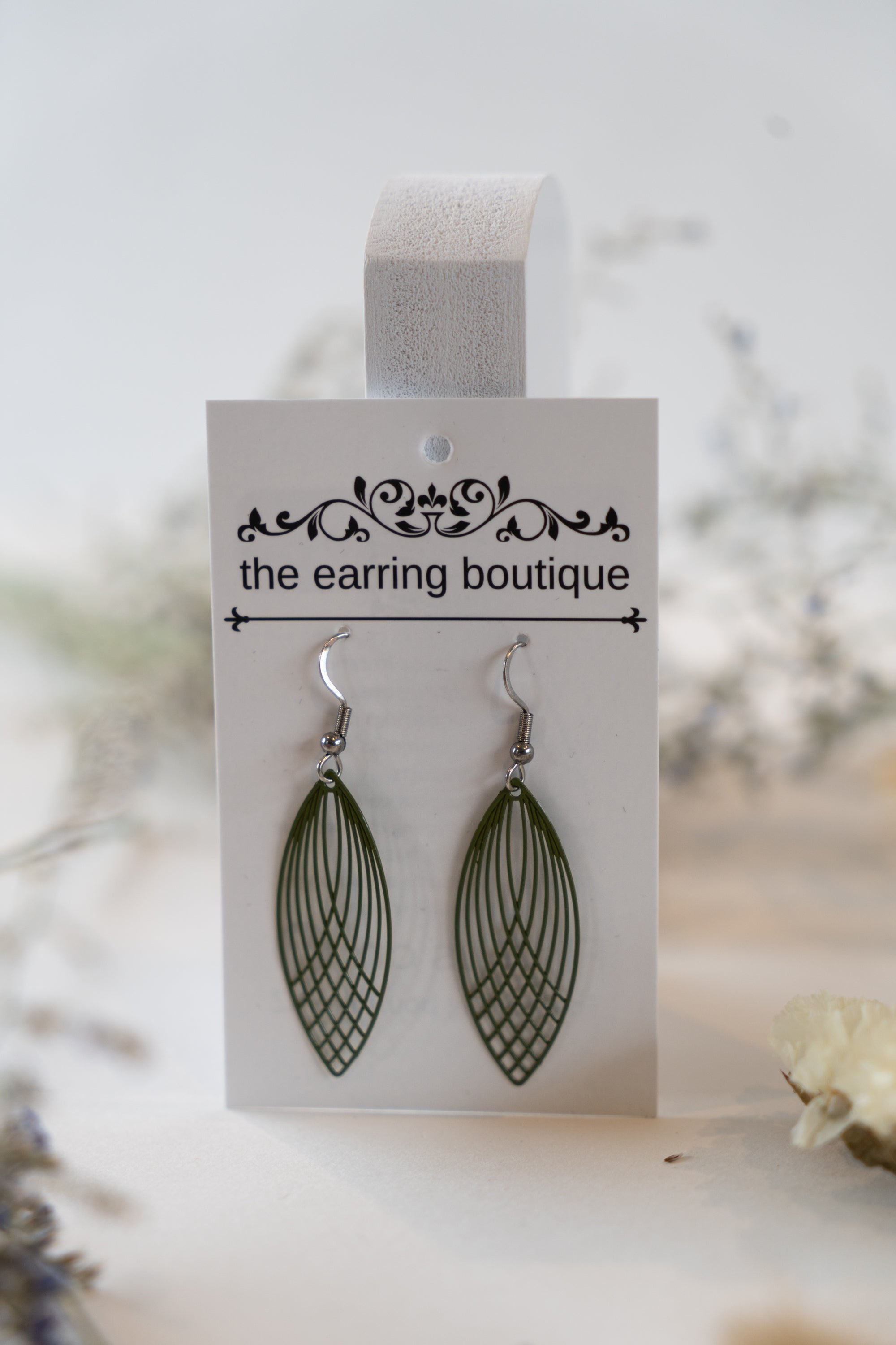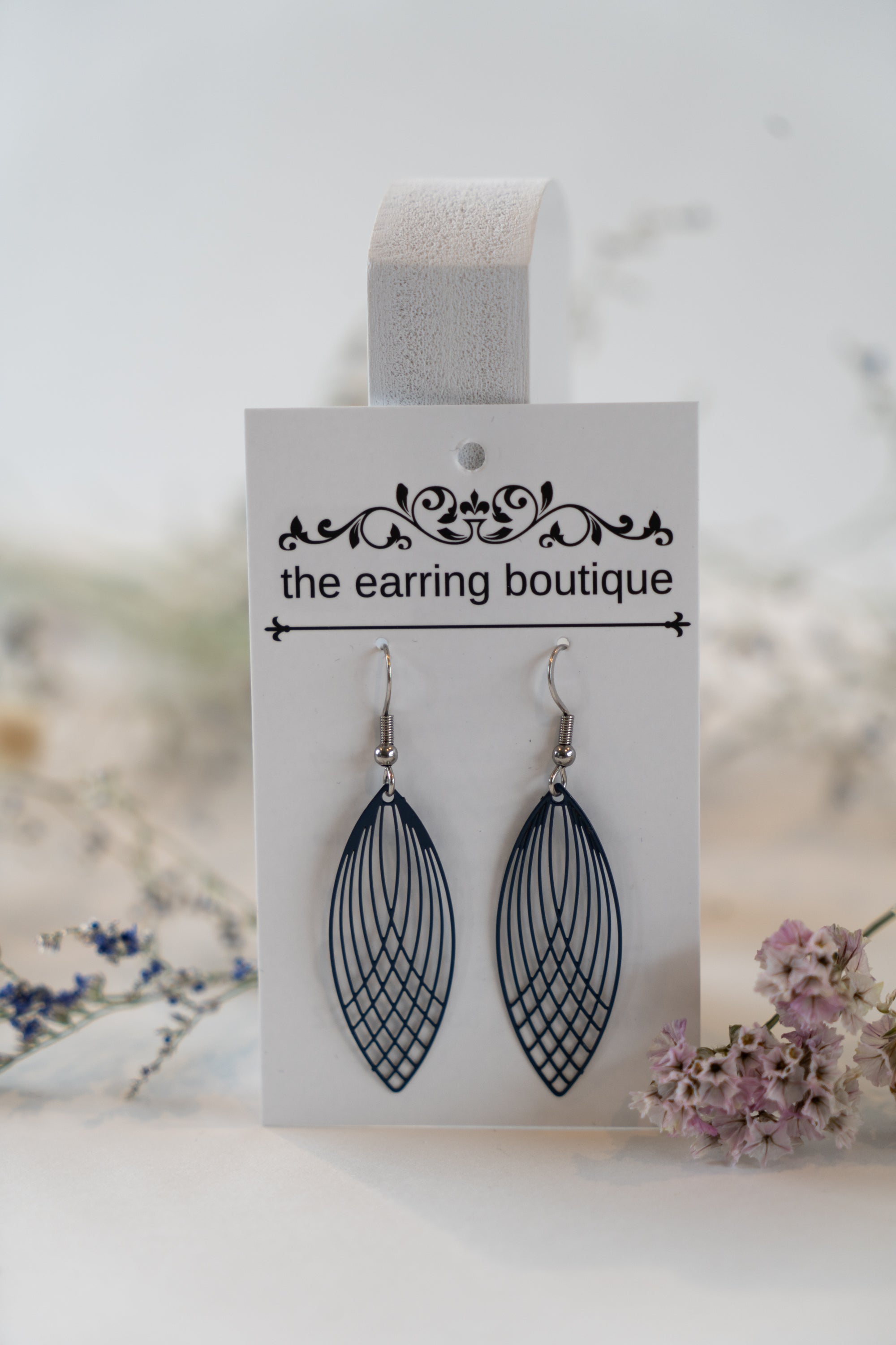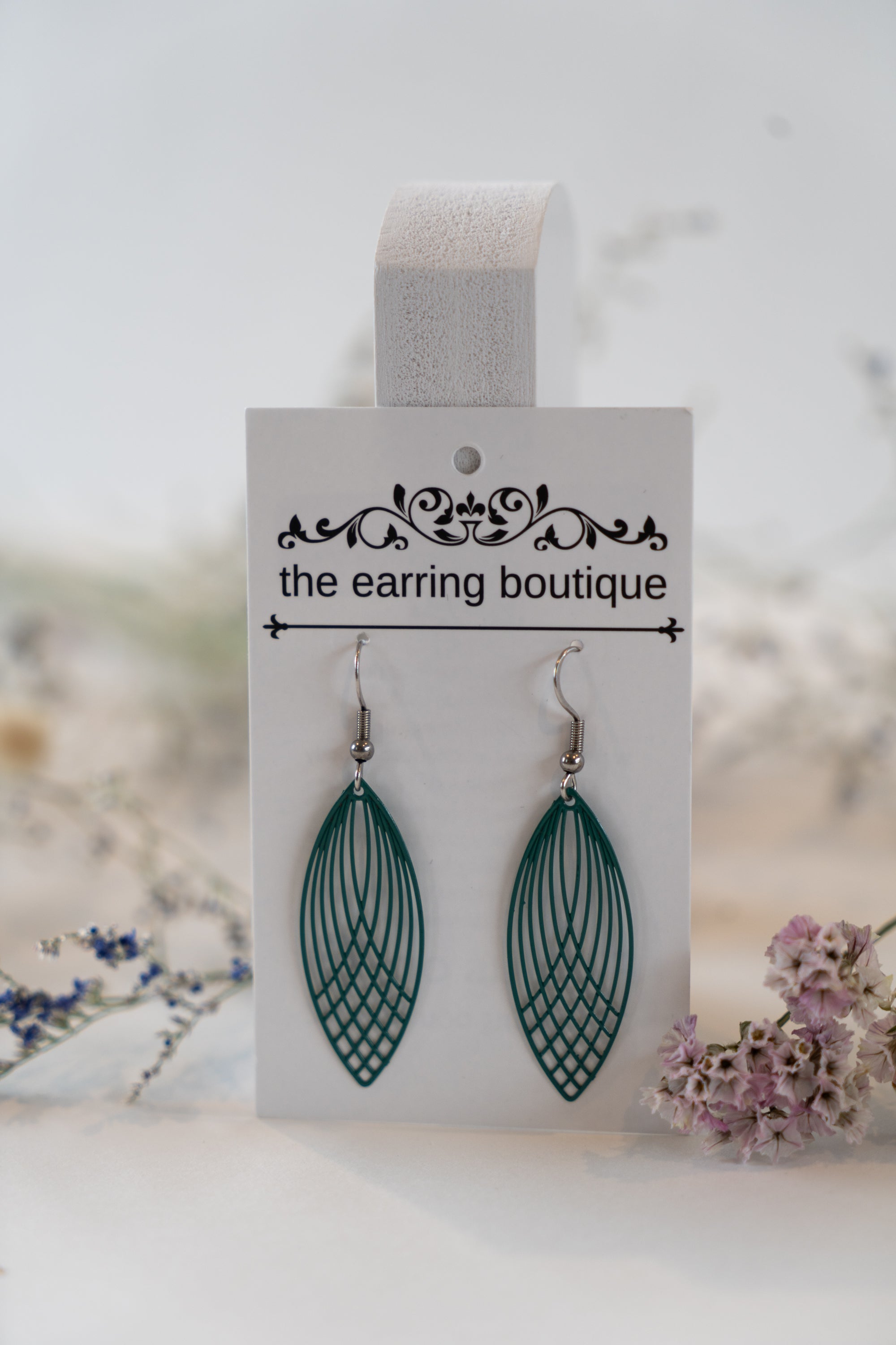 This range of fine metal mesh oval droplet earrings from Earring Boutique is available in a wide array of colors. Their delicate design and vibrant hues make them a versatile accessory, perfect for adding a touch of floral charm to any outfit.