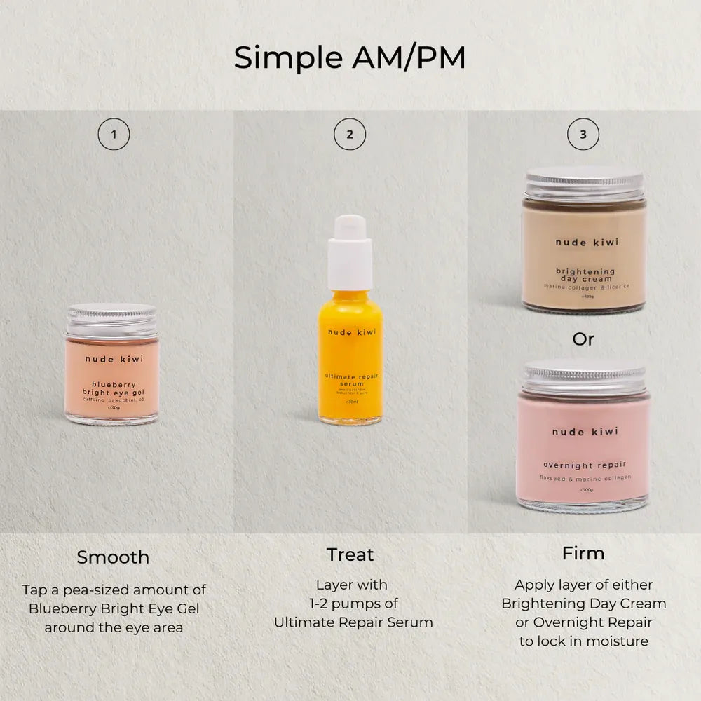 Ultimate Repair Serum: Apply 1-2 pumps onto skin after cleansing and before moisturising.