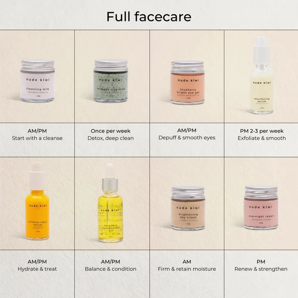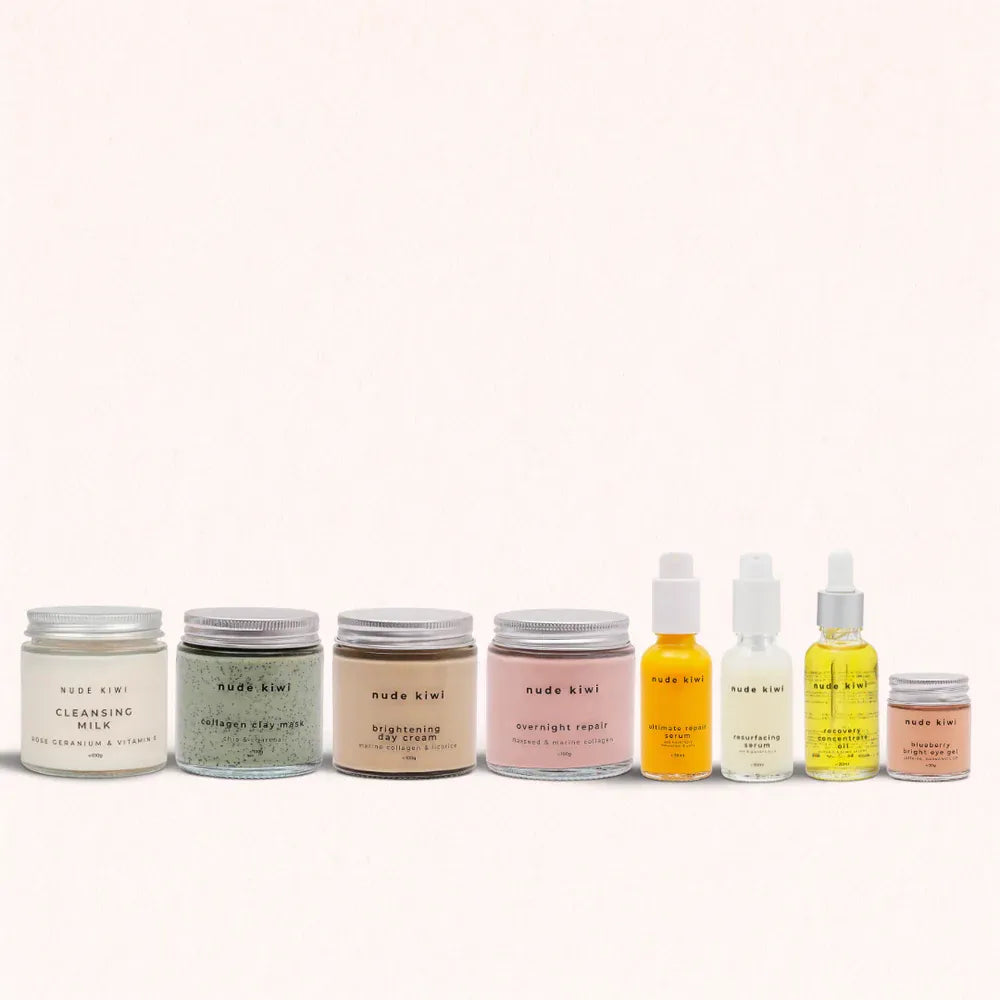 Overnight Repair: A rich overnight cream designed to deeply nourish and repair the skin barrier. Flaxseed and marine collagen help support overnight renewal while lavender and rose geranium oils soothe and calm. Wake up to hydrated, softer, and visibly refreshed skin.