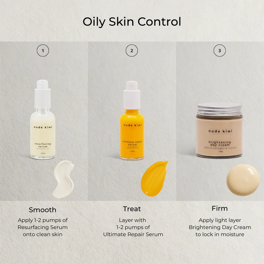 Resurfacing Serum: Apply 1–2 pumps to clean, dry skin in the evening. Use 2–3 times per week initially, then increase as tolerated. Follow with moisturiser. Always wear sunscreen during the day.