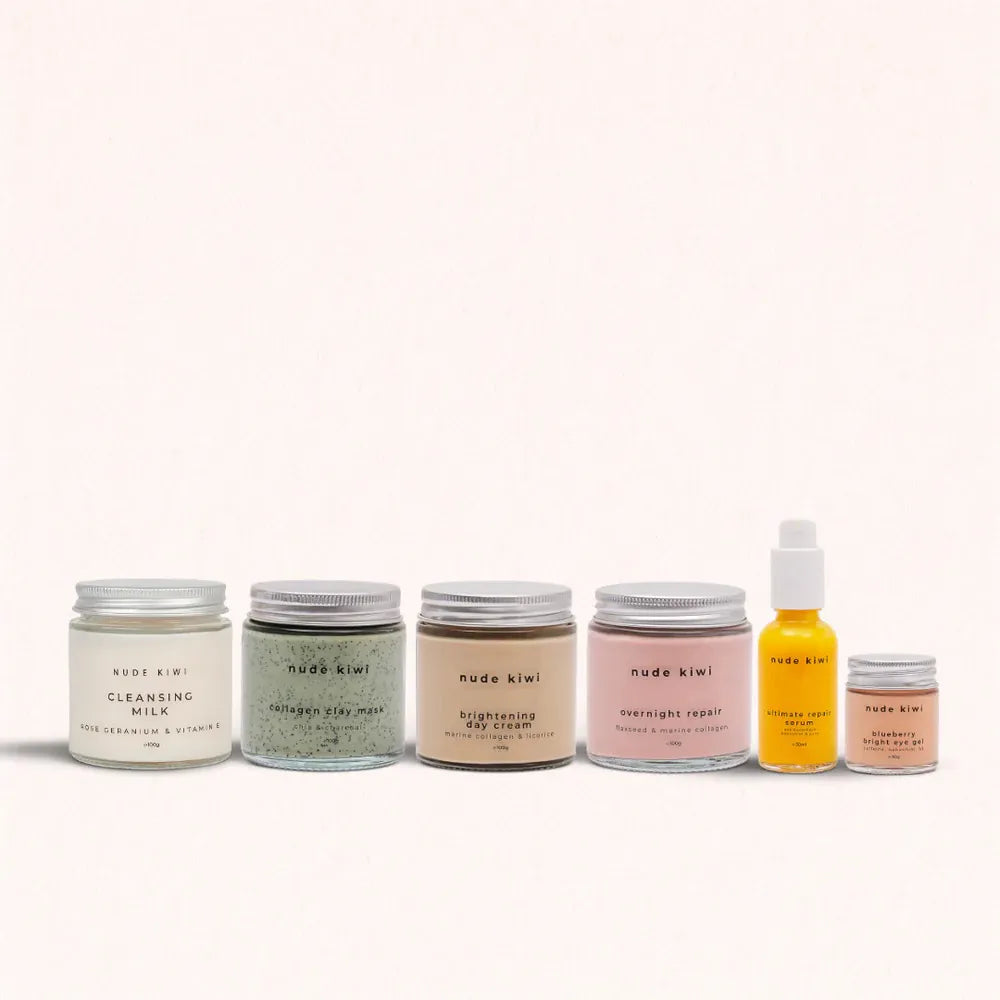 Collagen Clay Mask: Apply a generous, even layer to clean skin. Leave on for 10–15 minutes, then rinse with warm water. Use 1–2 times per week.