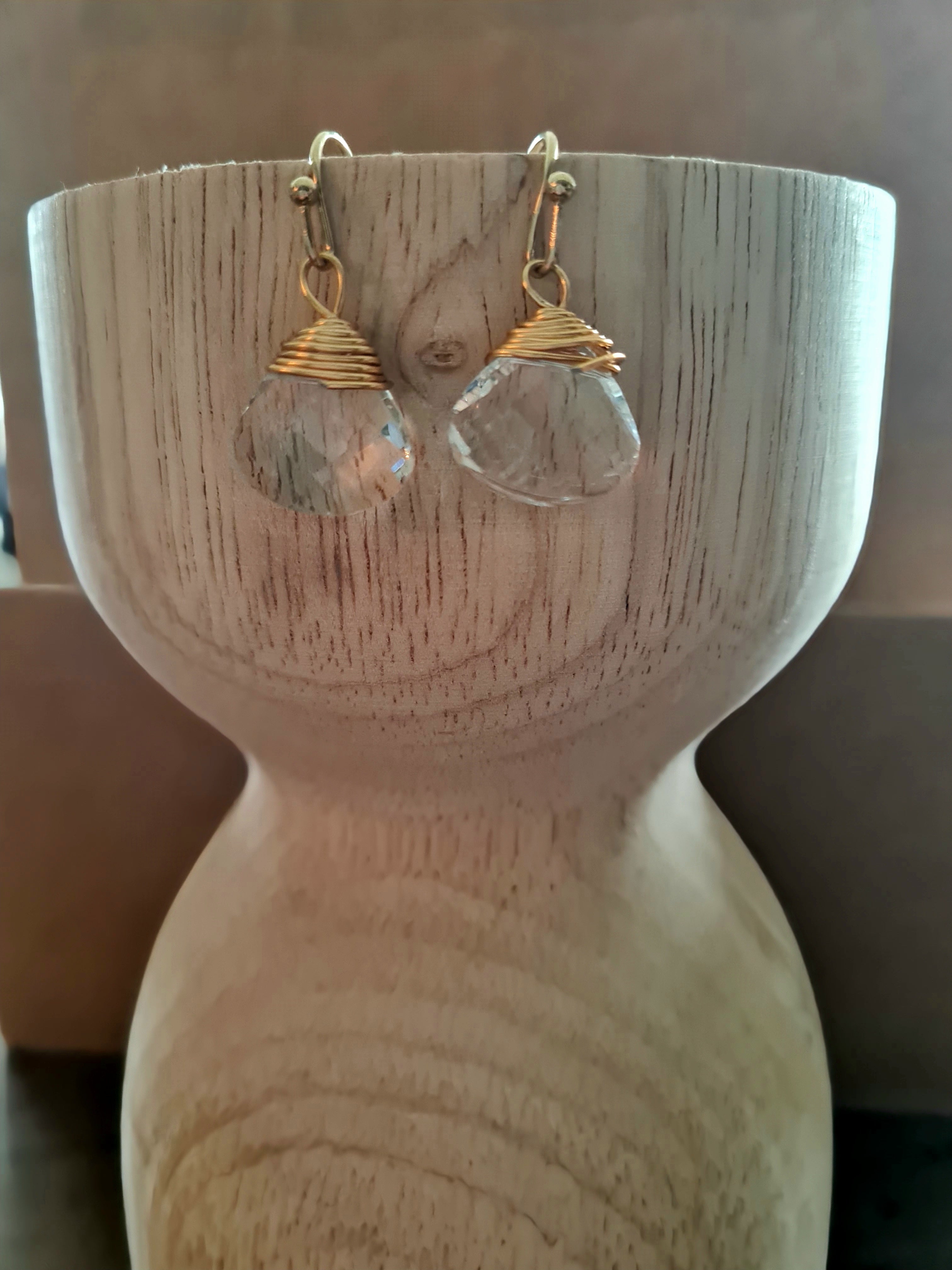 Pear-Shaped Quartz Earrings with Metal Wrap – Silver or Gold