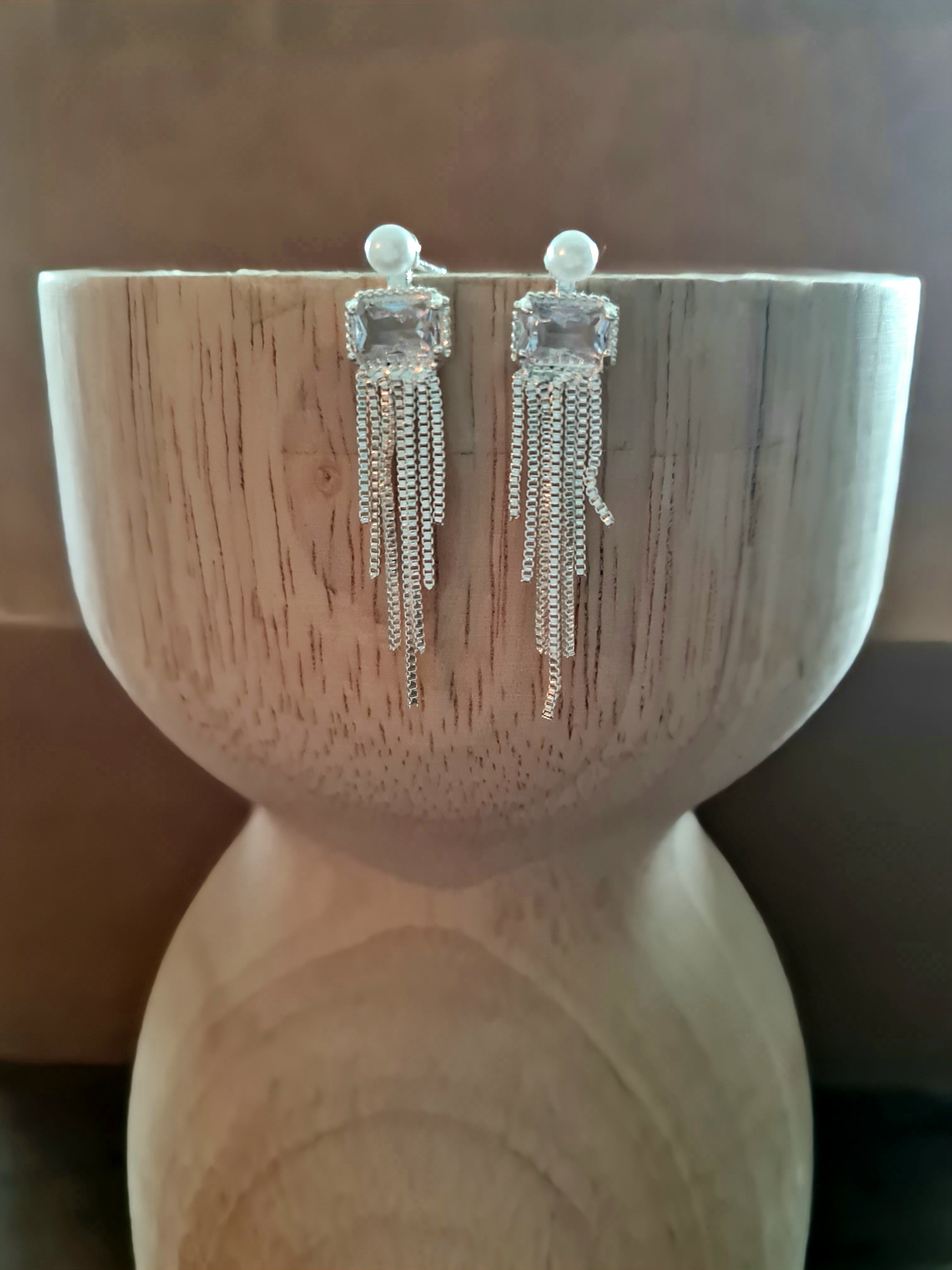 Perfect for the bride who loves subtle beauty, these mini earrings offer a refined, minimalistic charm. A tiny pearl sits above a small sparkling crystal, both gently wrapped in fine chain that cascades downward in soft, layered strands. Lightweight and gracefully understated, they’re an ideal choice for a modern wedding, bridesmaids, or elegant event styling where delicate detail makes all the difference.