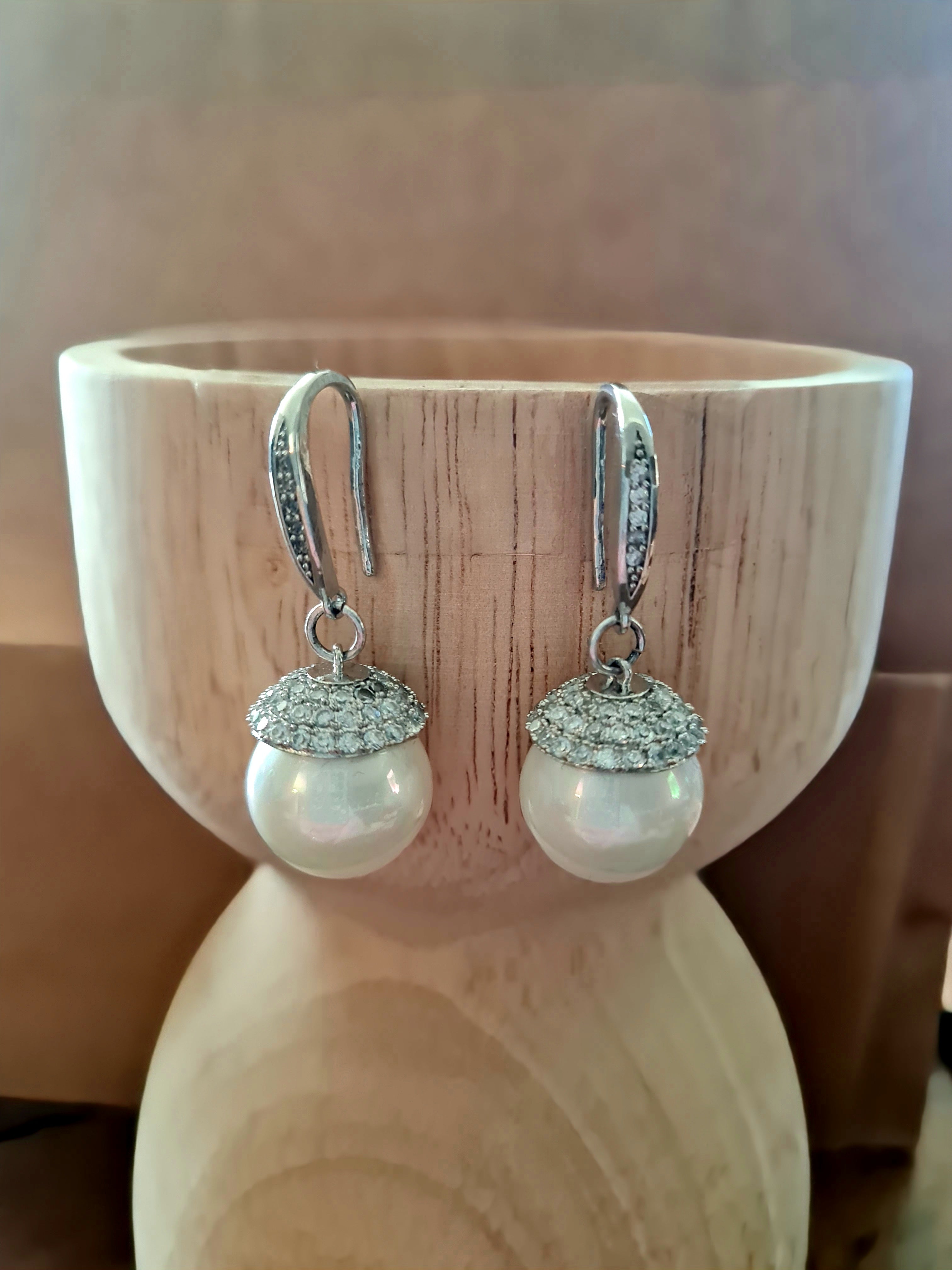 Silver Crystal Cap Pearl Drop Earrings