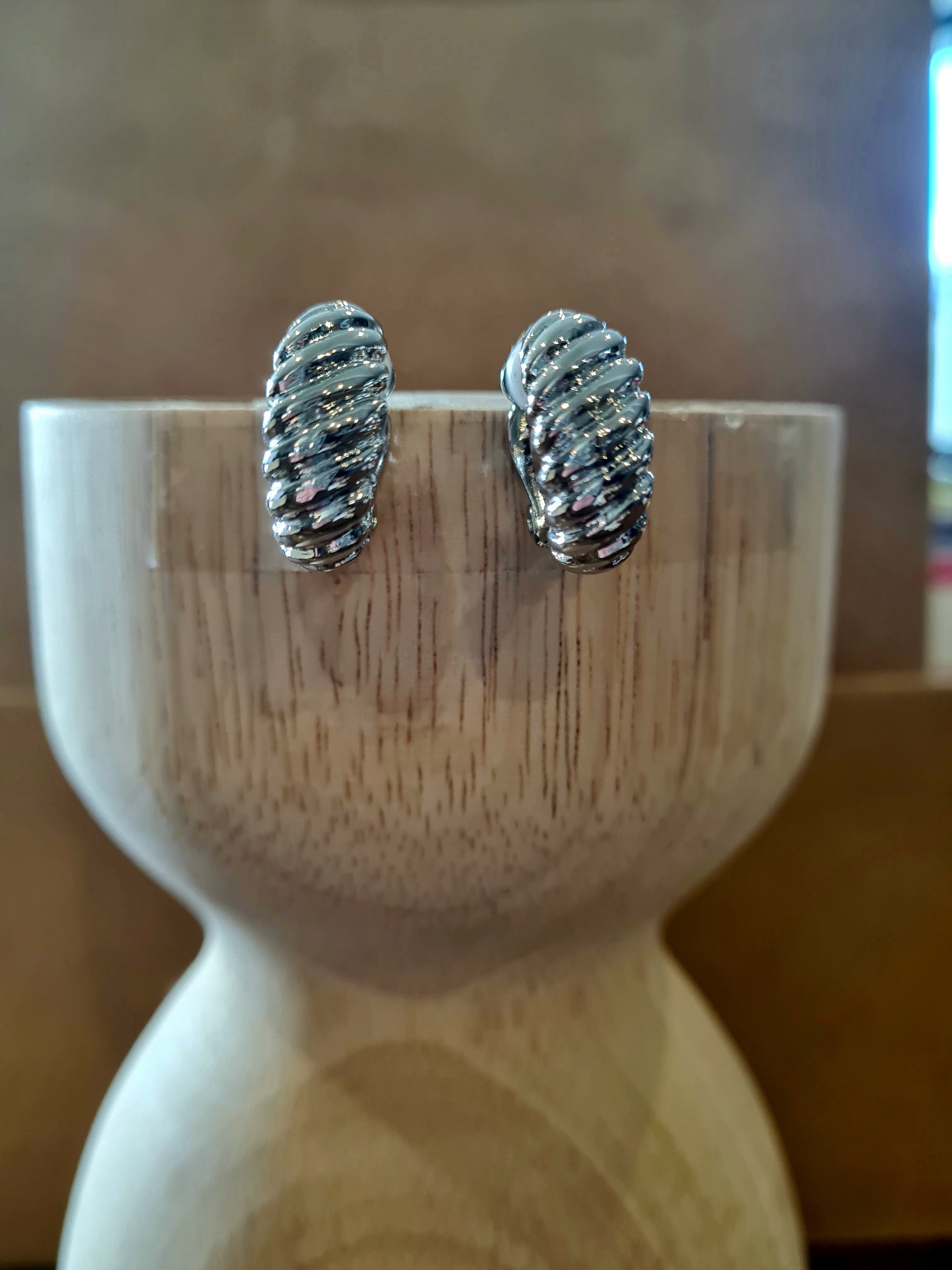 Sleek silver huggie earrings with subtle angled ridges for a modern, textured finish. A versatile everyday classic with a contemporary edge.