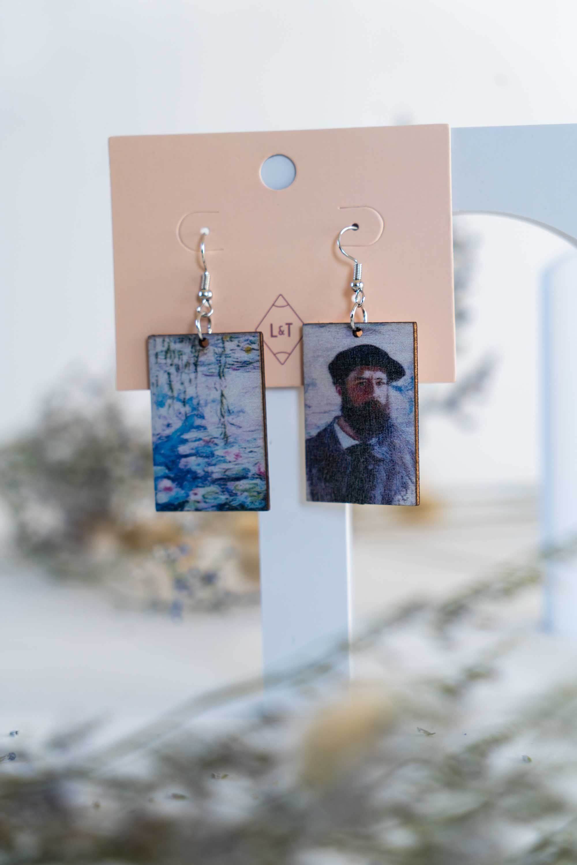 If you're a fan of this artist, you may love these earrings. One earring features a picture of Van Gogh, while the other showcases one of his iconic paintings. They’re quite different and perfect for celebrating his art in a unique way.