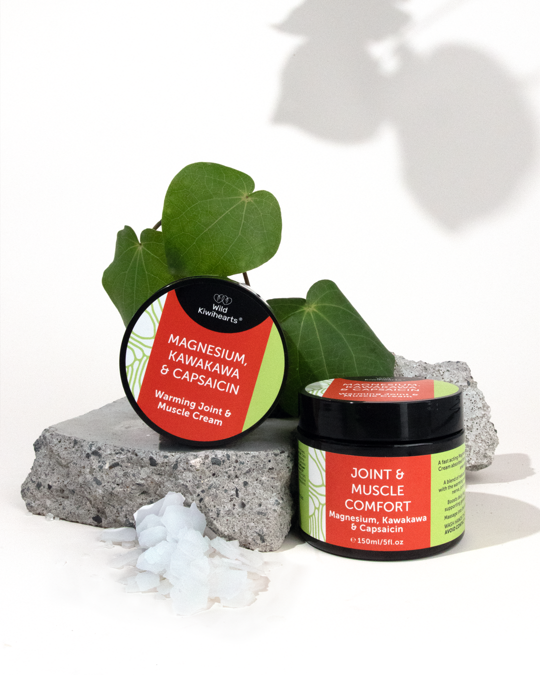 Wild Kiwihearts Magnesium Kawakawa & Capsaicin Cream is our new addition with the added active ingredient of Capsaicin. This cream offers natural relief from nerve, joint and muscle discomfort.