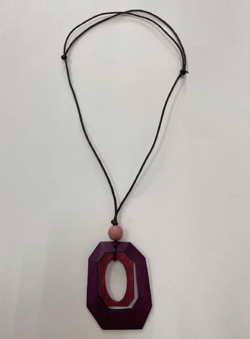 Wooden Necklace Pendant Two Tone Large - Burgundy