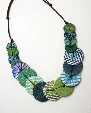 The Crochet Range of wooden pendants includes string work over a mix of colour options